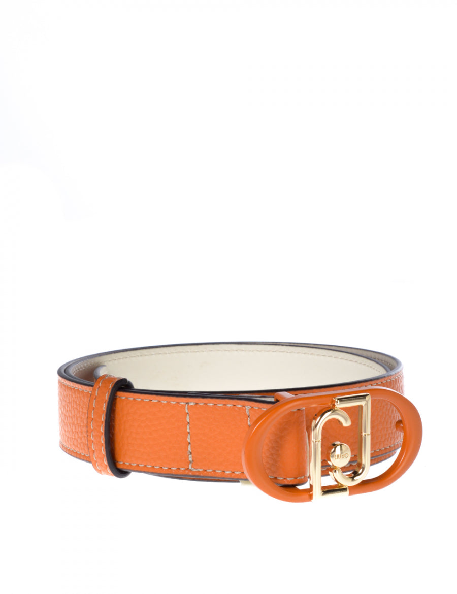 Cinto laranja de pele TWINSET com logotipo da mesma cor