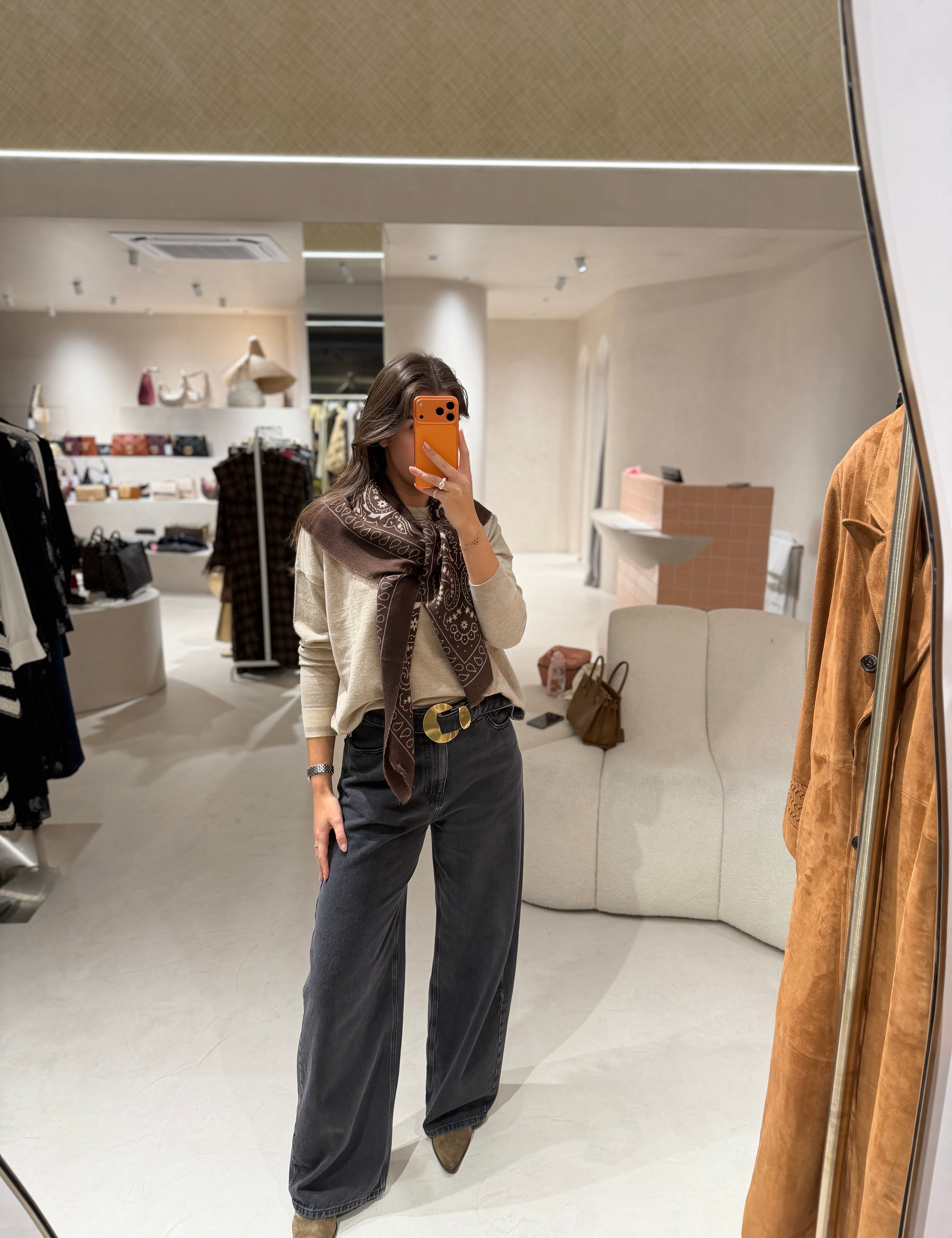Jeans Cinza Wide com Cinto e Maxi Fivela | TWINSET