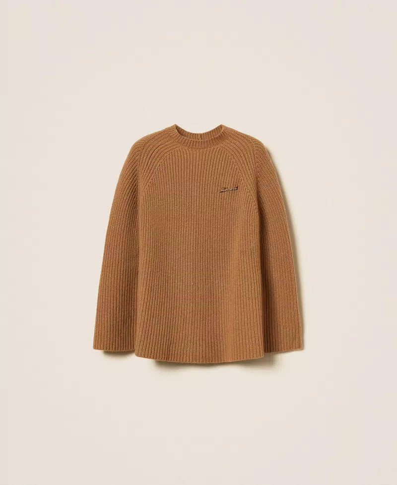 Poncho TWINSET em pêlo sintético com logotipos em relevo