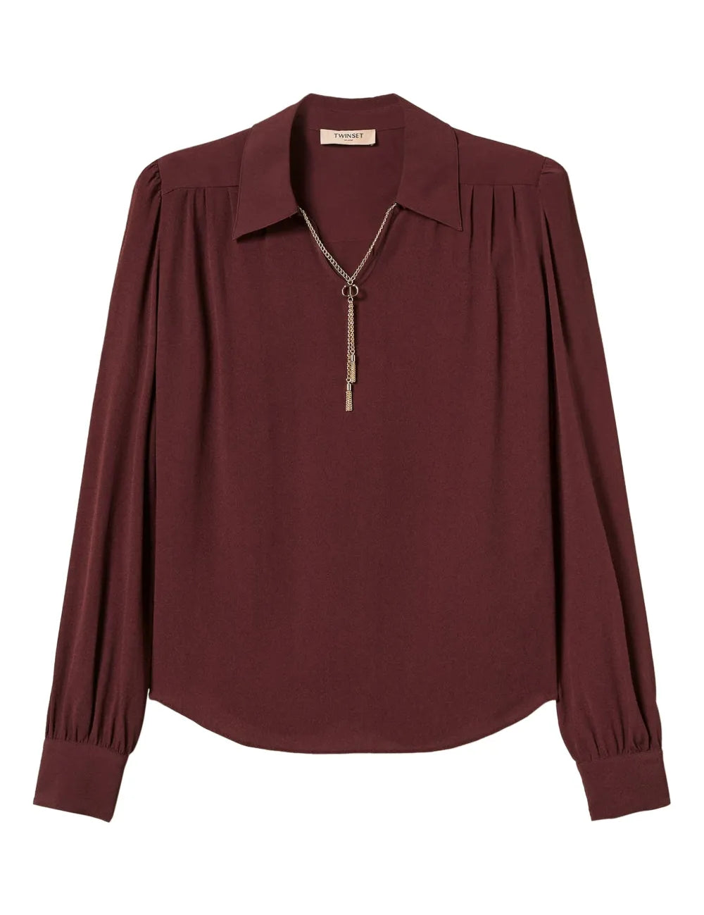 Blusa Bordeuax com Corrente e Franzidos | TWINSET