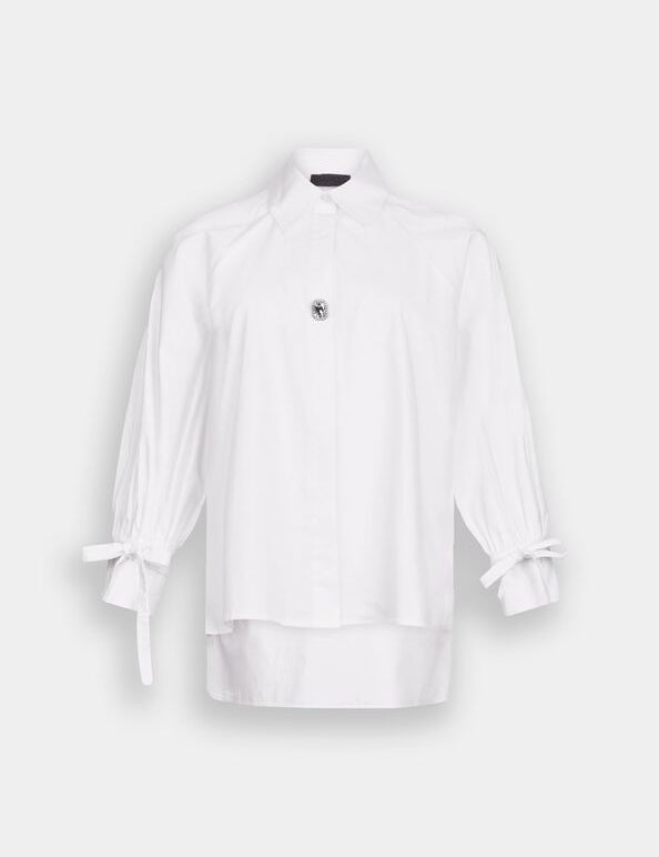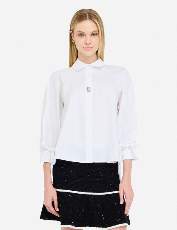 Camisa de Algodão Branca com Botão Joia e Laço na Manga | Liu Jo