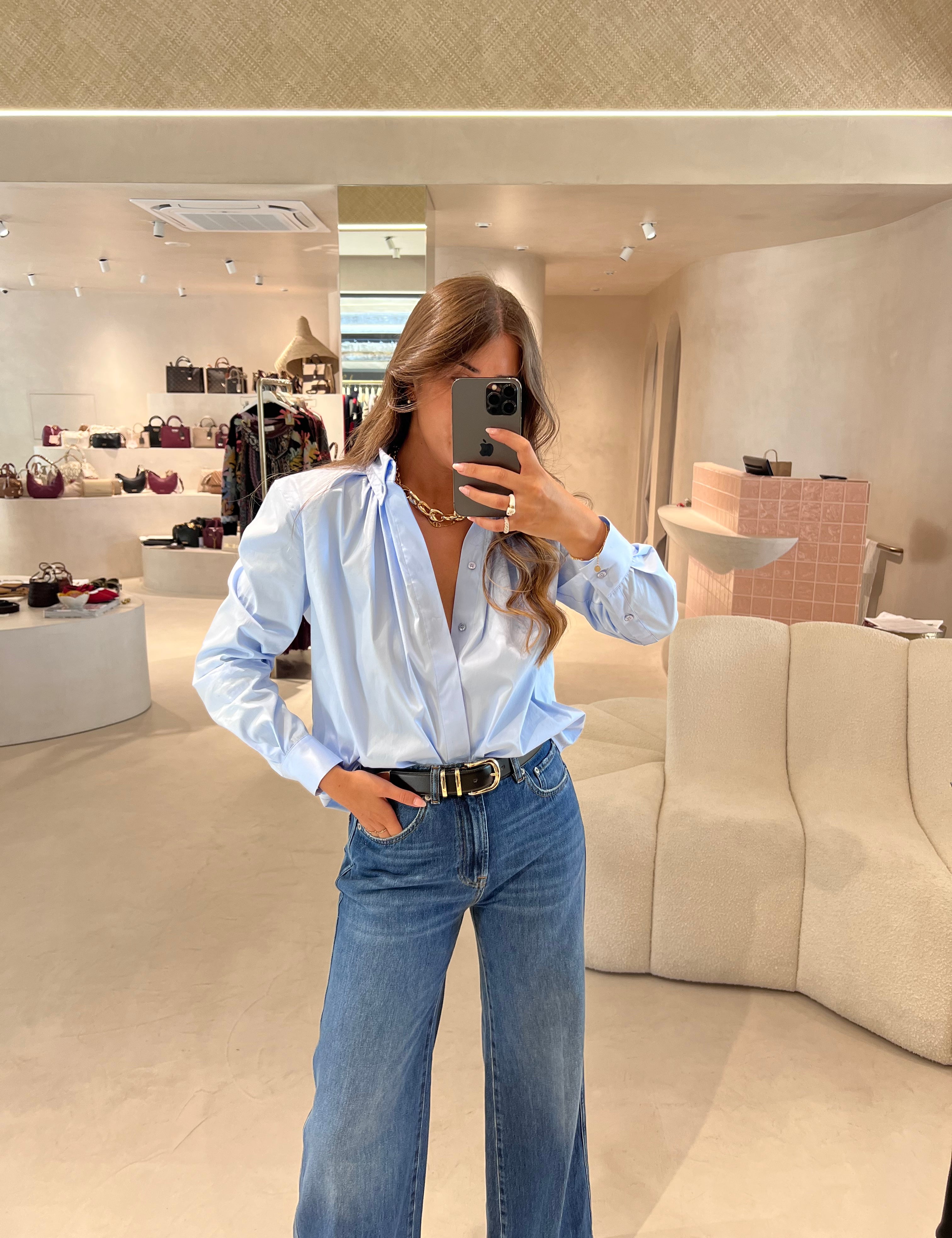 Camisa em Popeline Azul Francesca | SEMICOUTURE