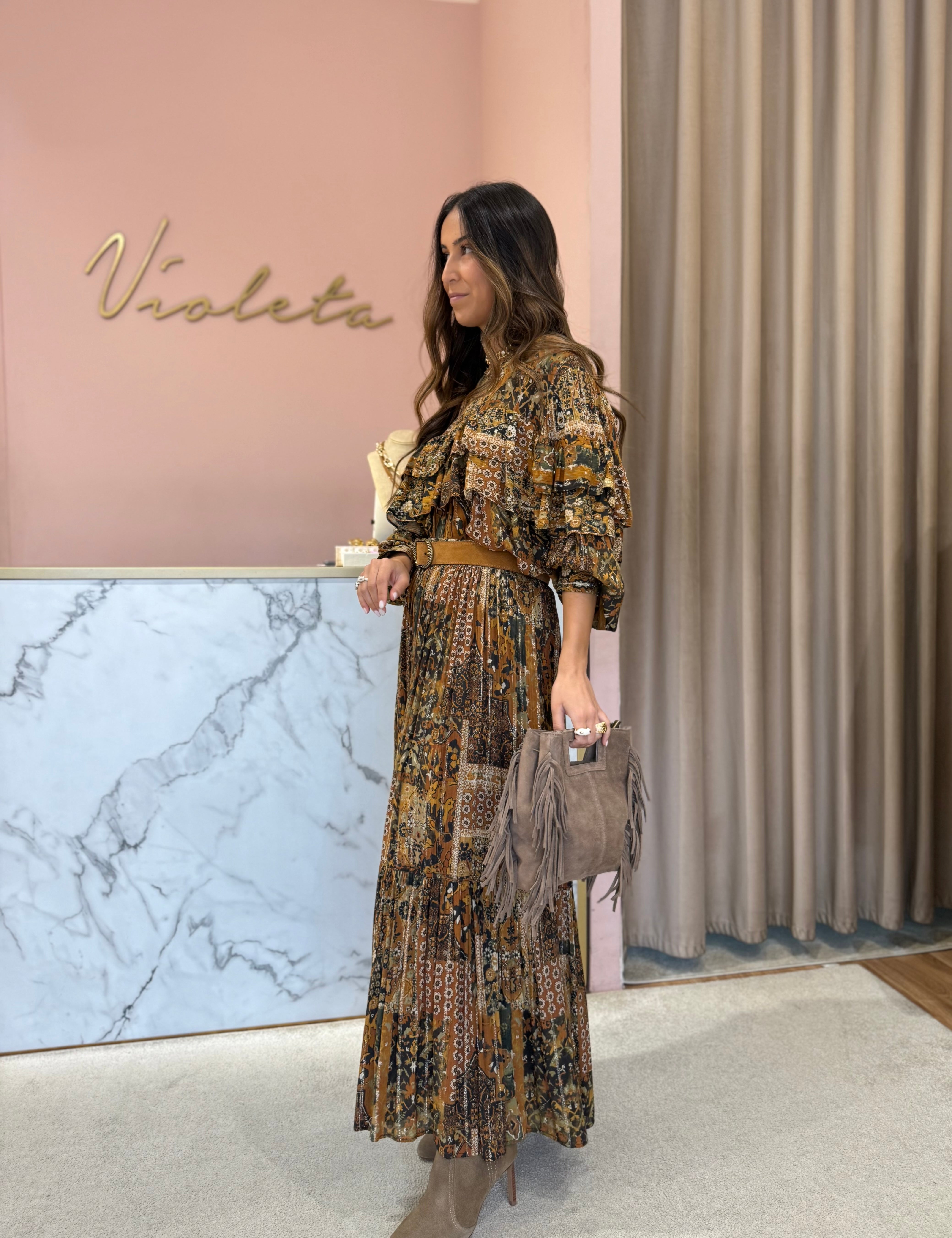 Blusa com Gola de Folhos Xadrez Castanho | VIOLETA