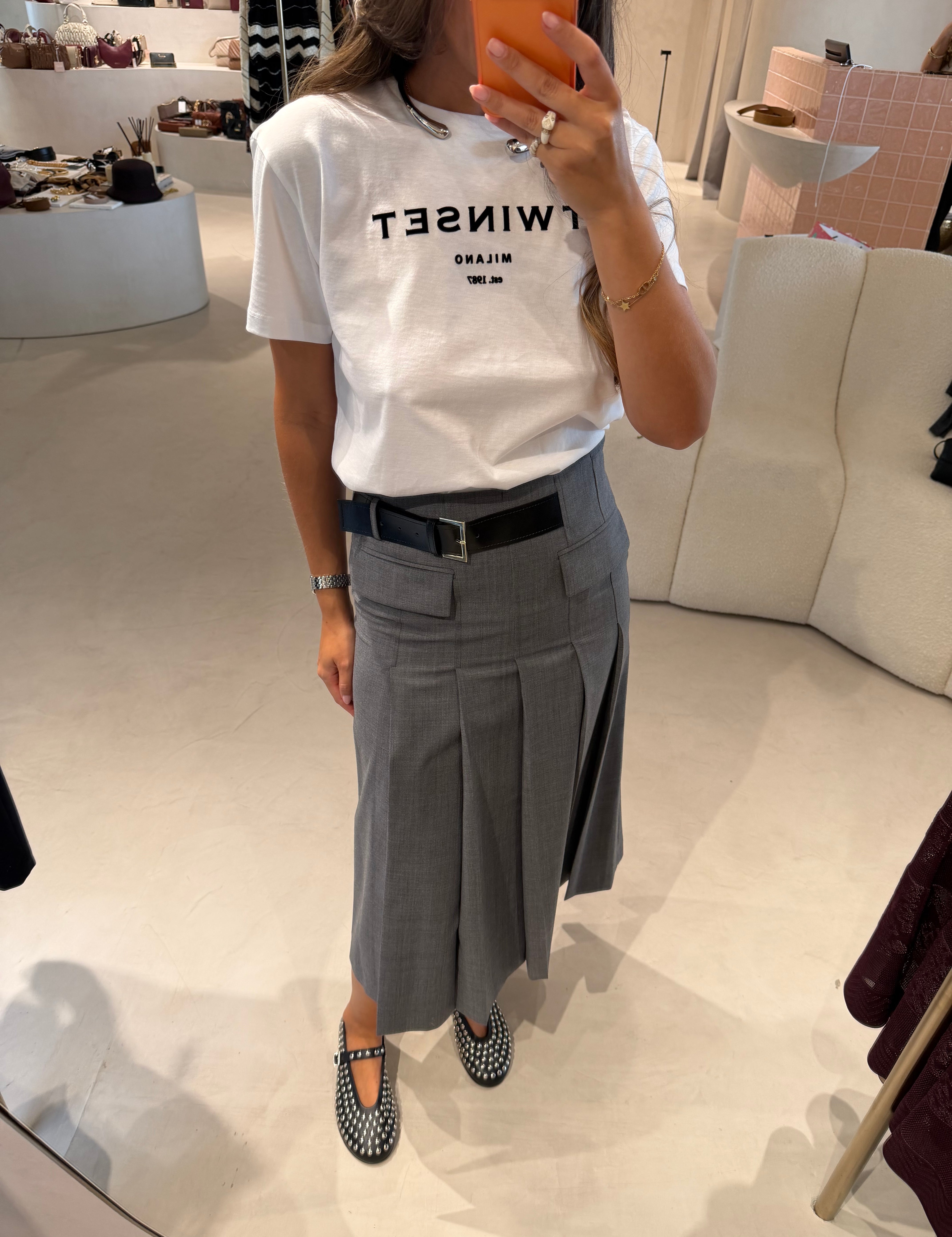 Saia Midi em Lã Cinza com Cinto Tracy | SEMICOUTURE