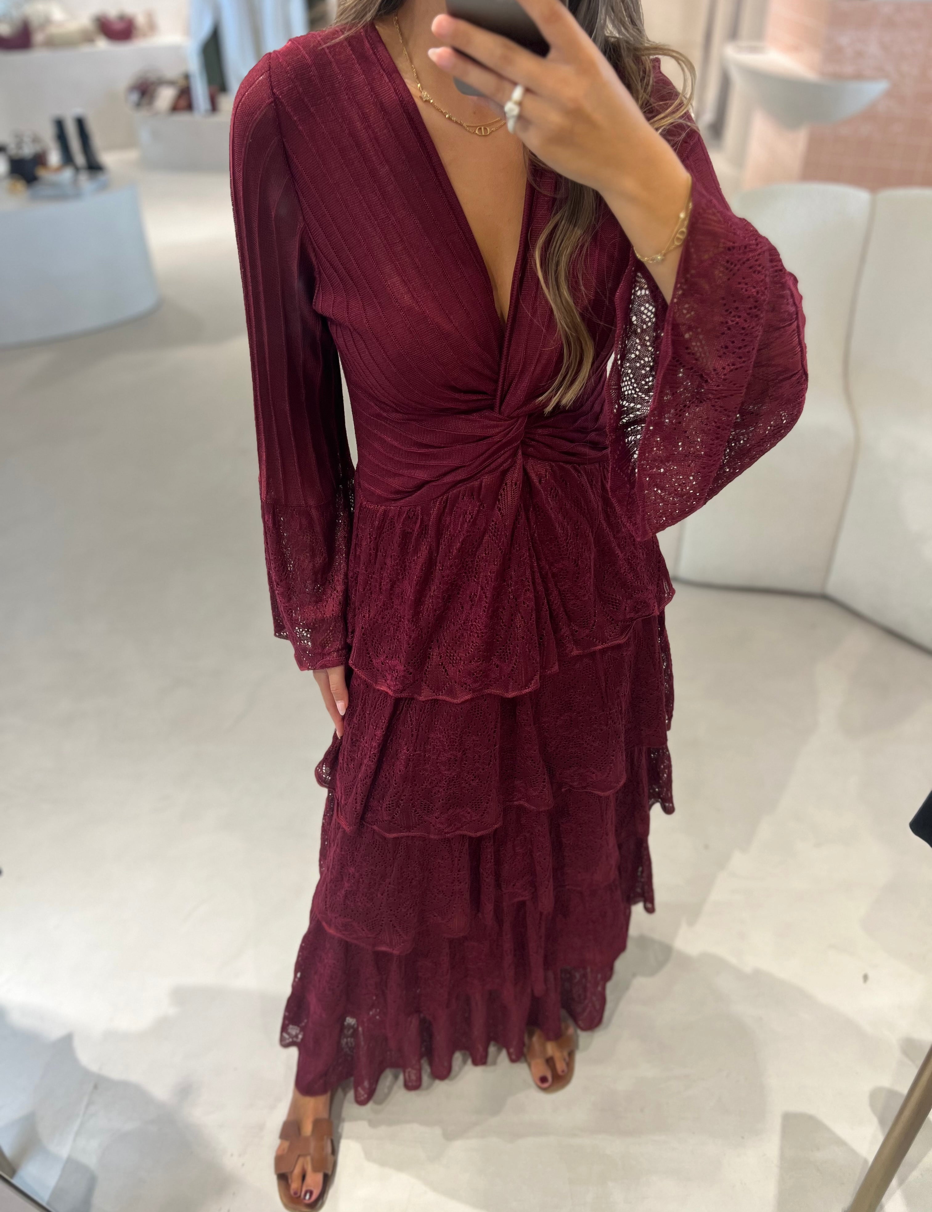 Vestido em Tricot Bordeaux com Folhos Marcela | CECILIA PRADO