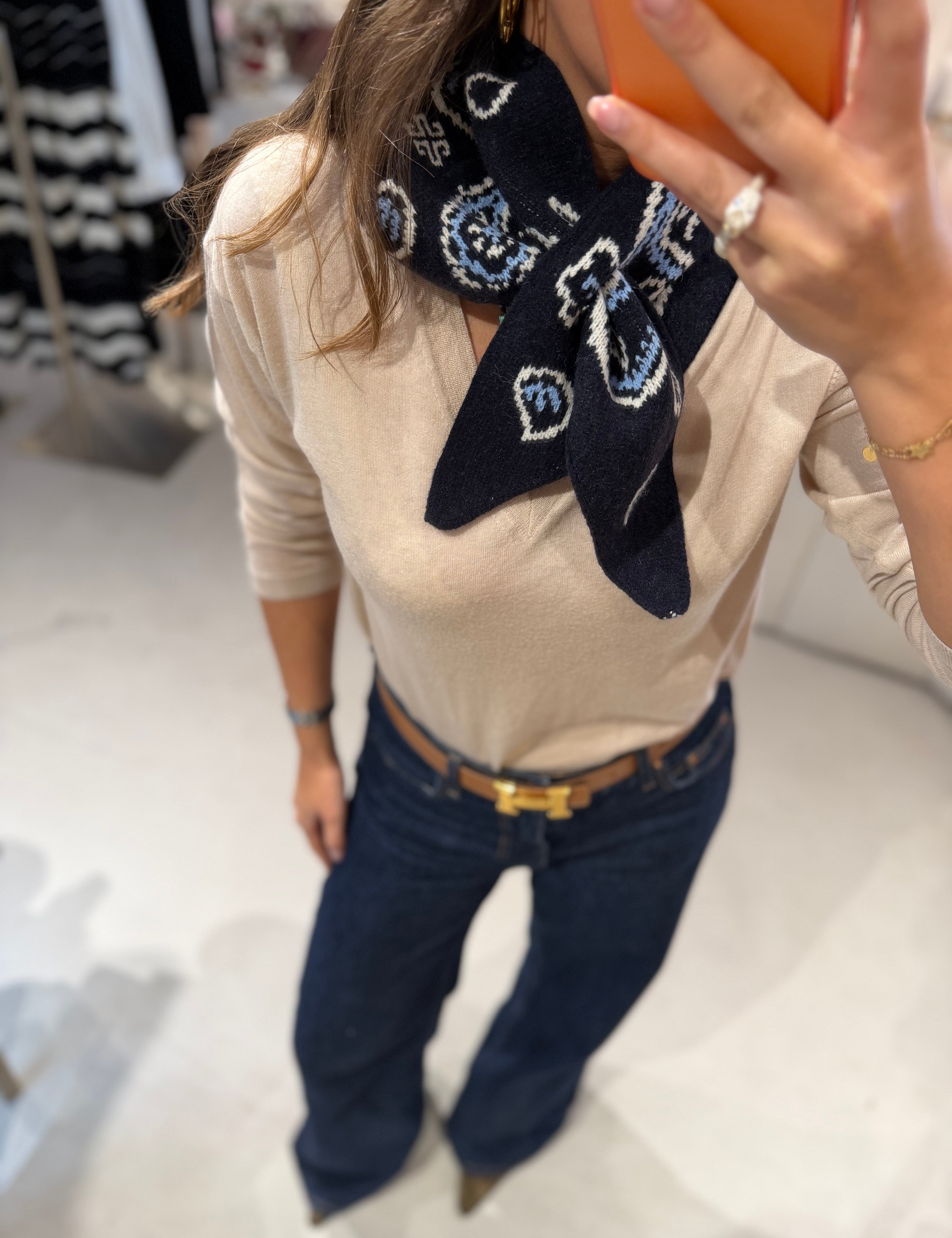 Bandana Triangular Malha com Caxemira Azul | VIOLETA
