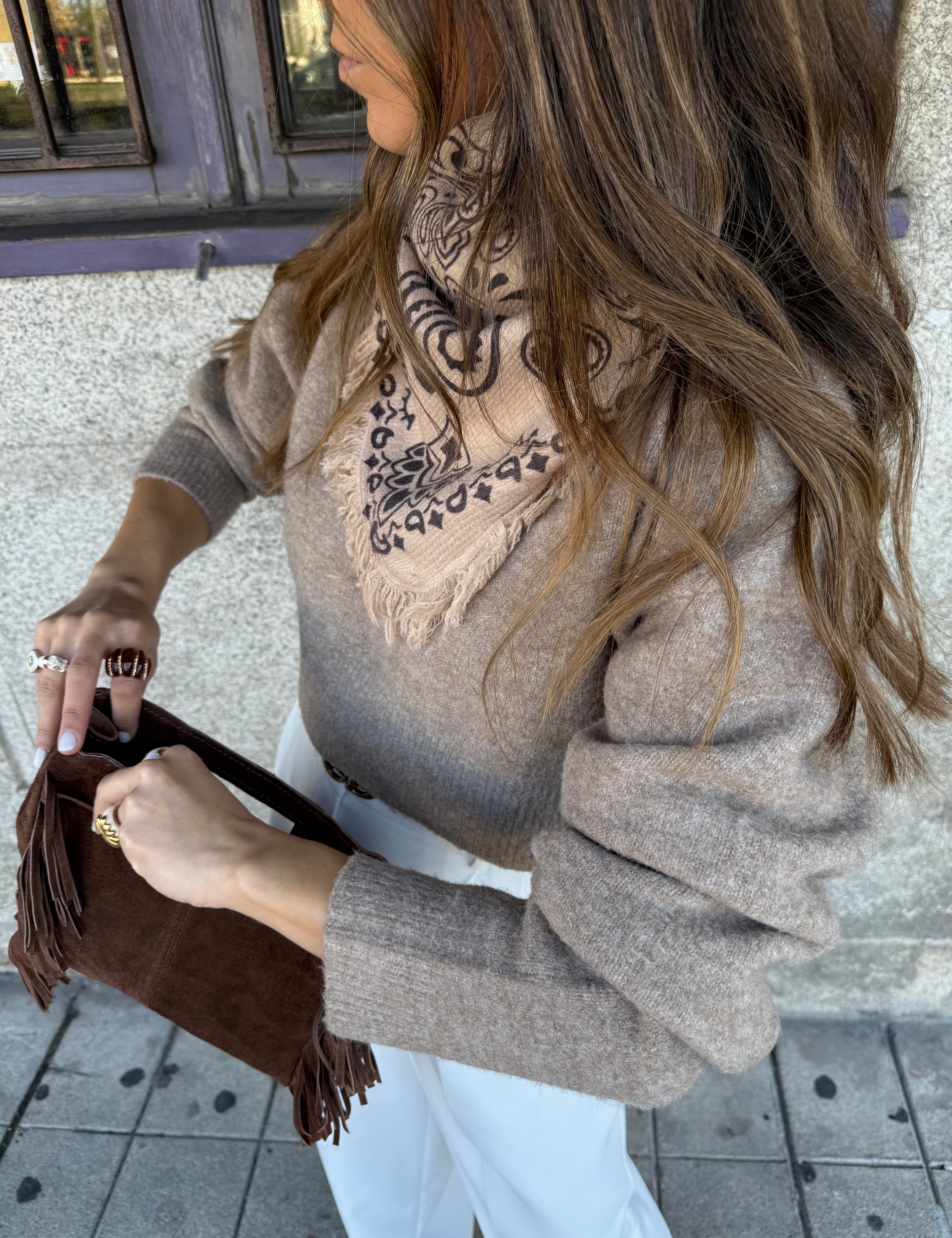 Bandana Triangular Malha com Caxemira Kaki | VIOLETA
