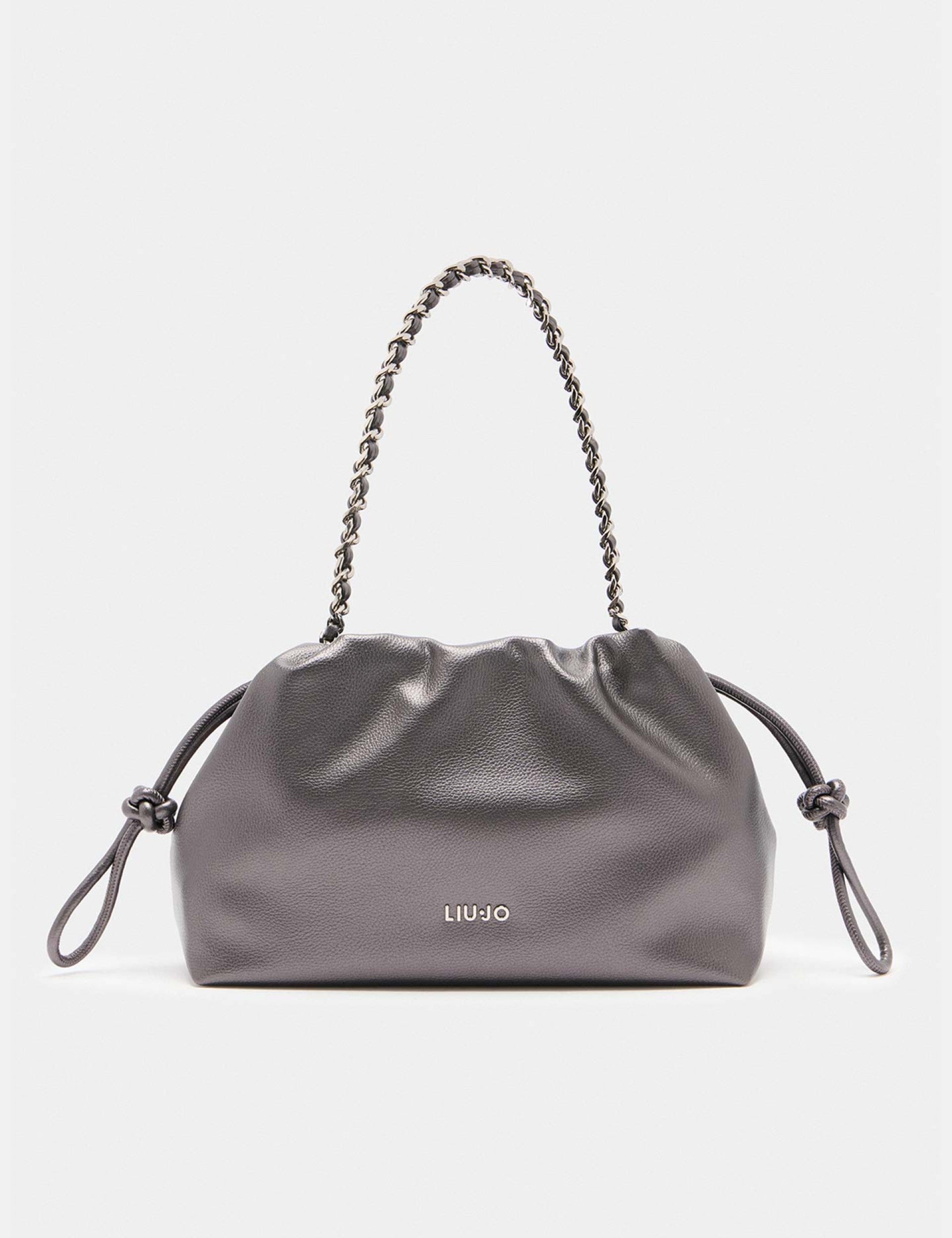 Mala de Ombro Medium Prata com Fecho em Cordão | Liu Jo