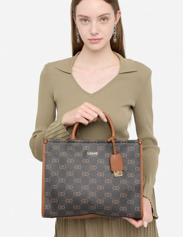 Mala de Mão Tote Bag Logotipada Camel | Liu Jo