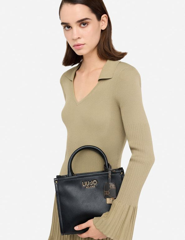 Mala de Mão Tote Bag Logotipada Preta | Liu Jo