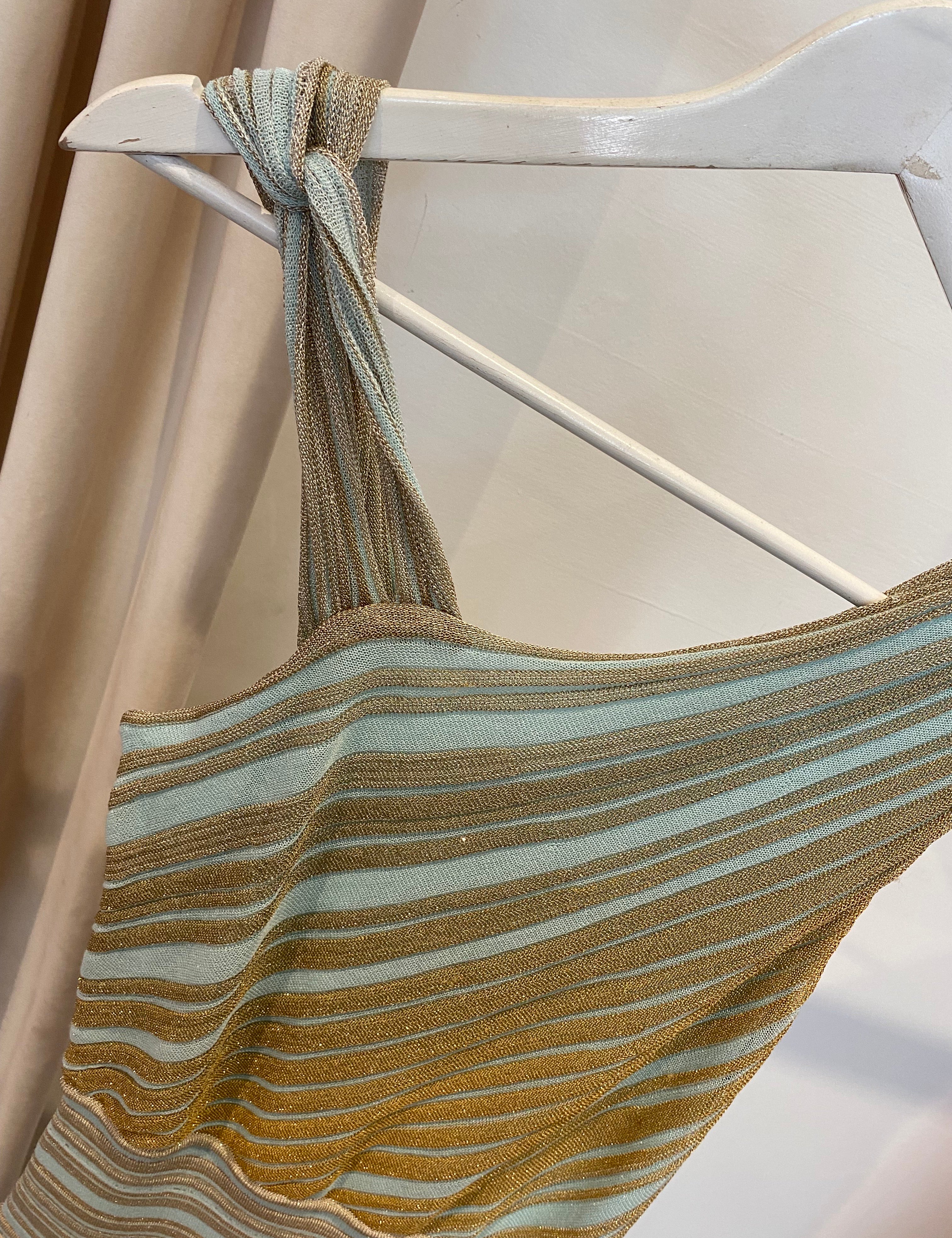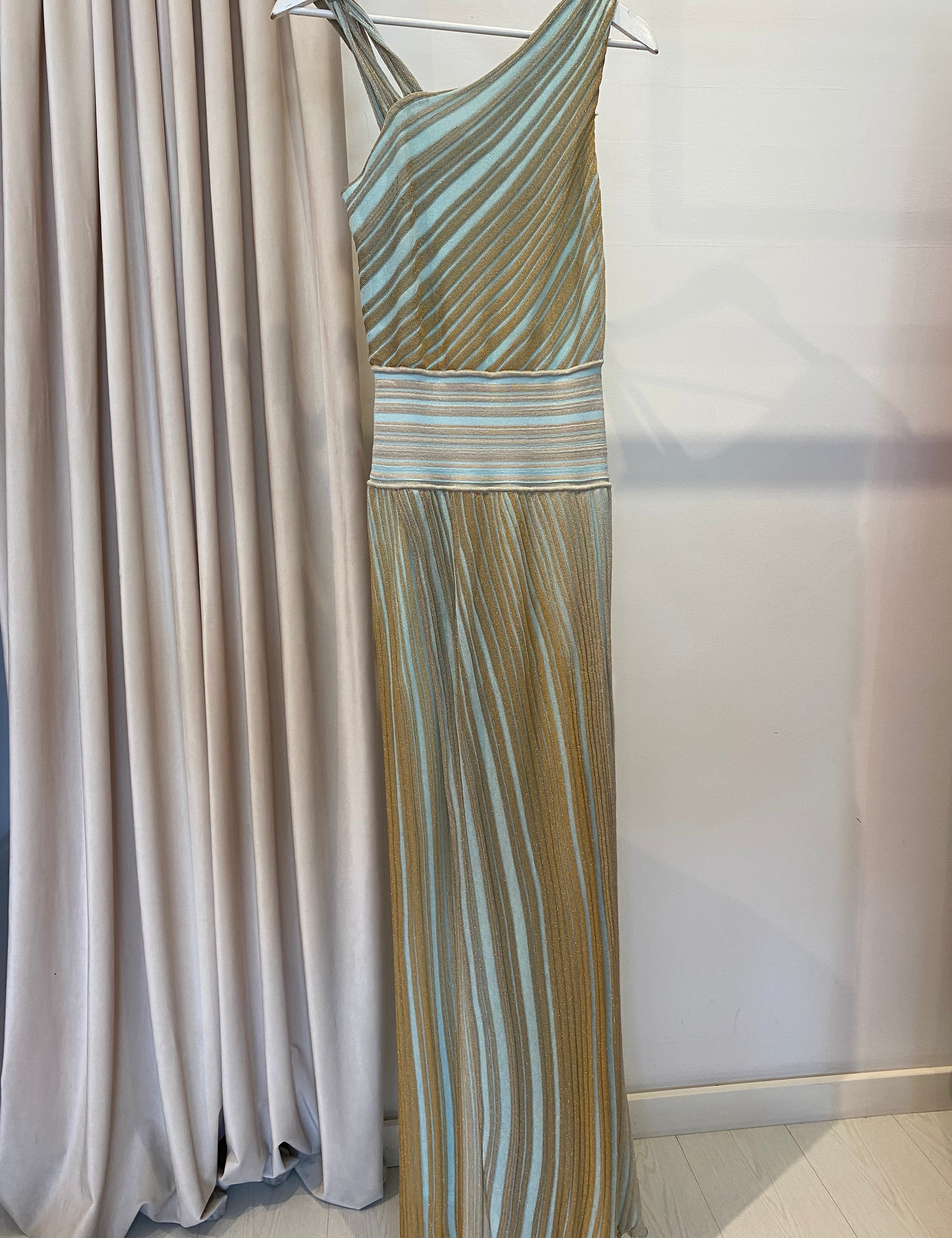 Vestido longo NENETTE de festa em malha lurex azul e dourado