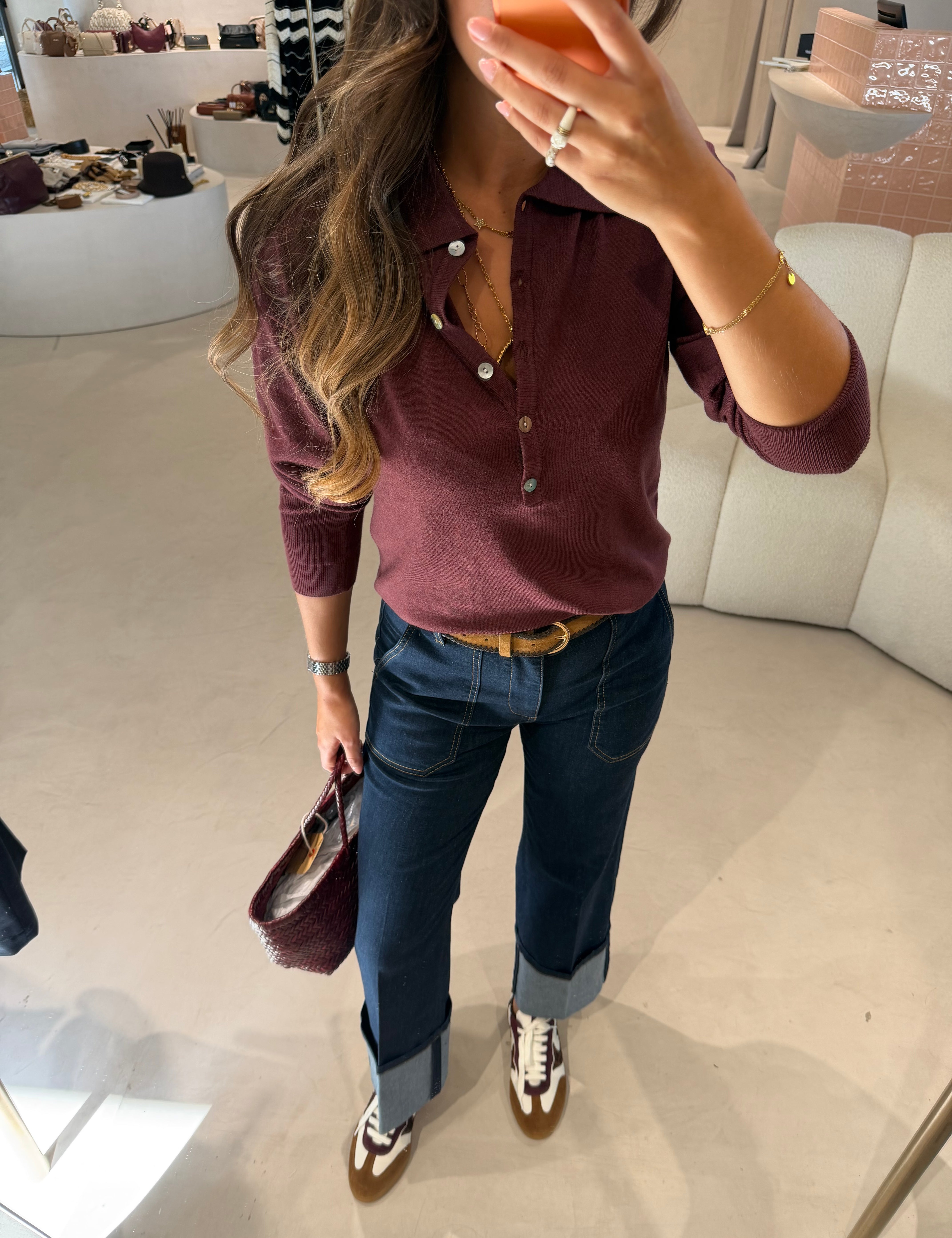 Camisola Polo em Malha Bordeuax | ottod'ame