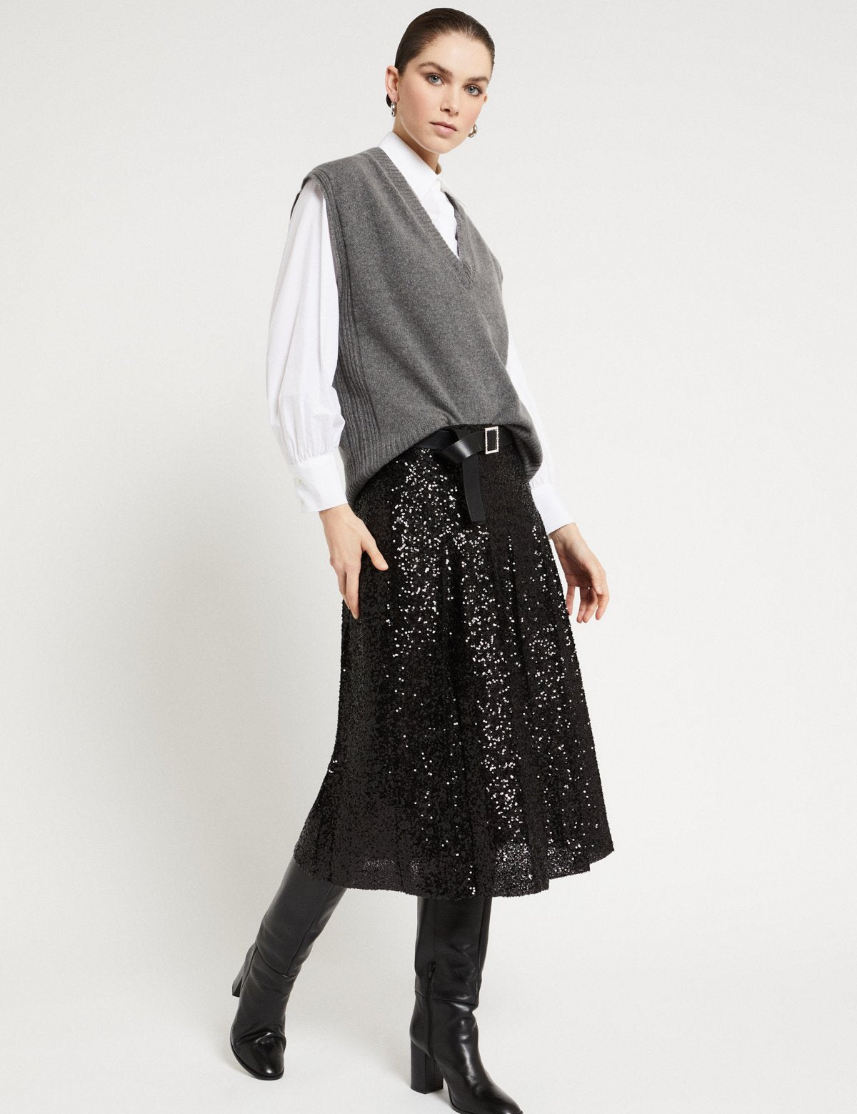 Saia de Lã com Pregas e Fecho Elegante Agueda | Semicouture