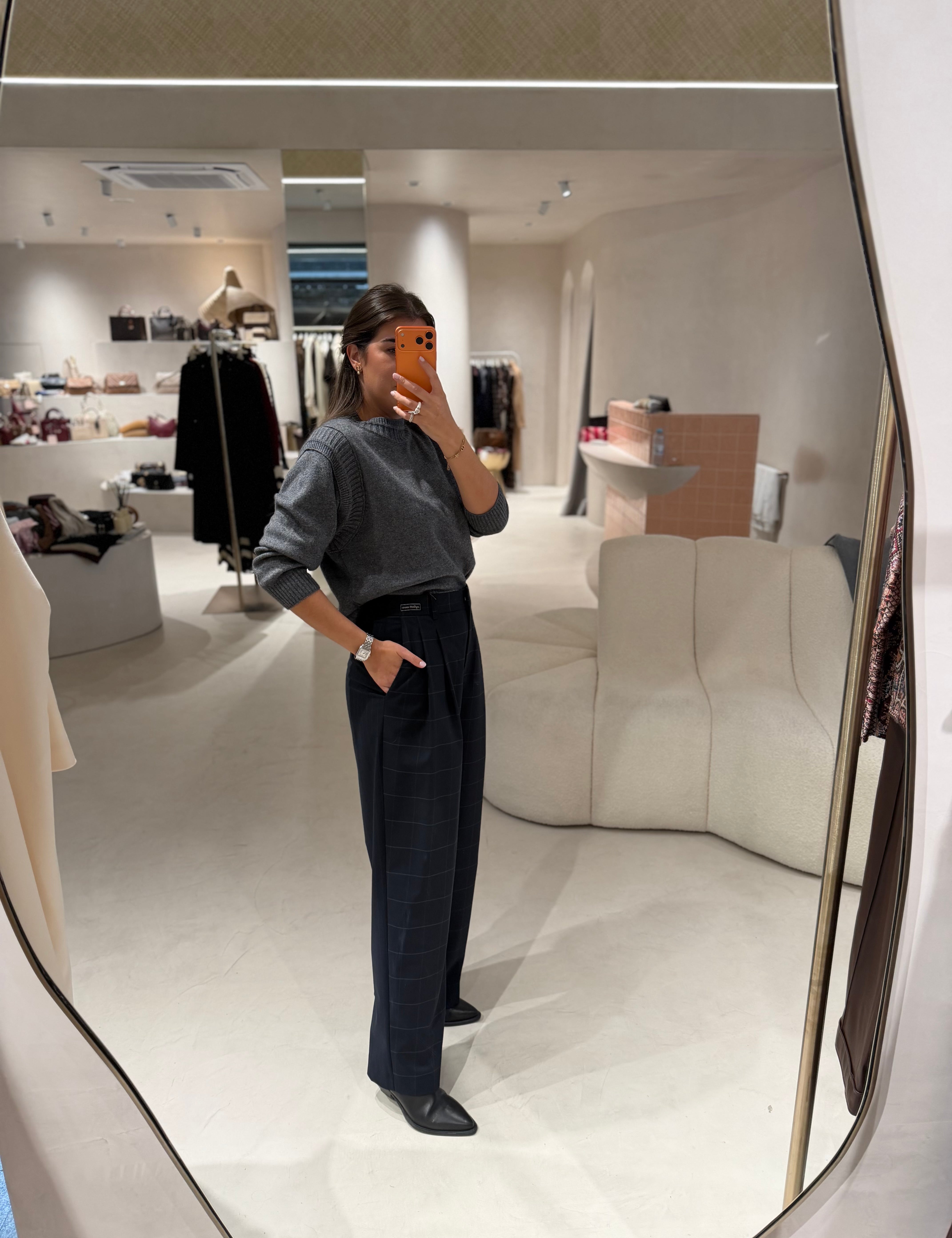Calça em Mistura de Lã Risca de Giz | ottod'ame