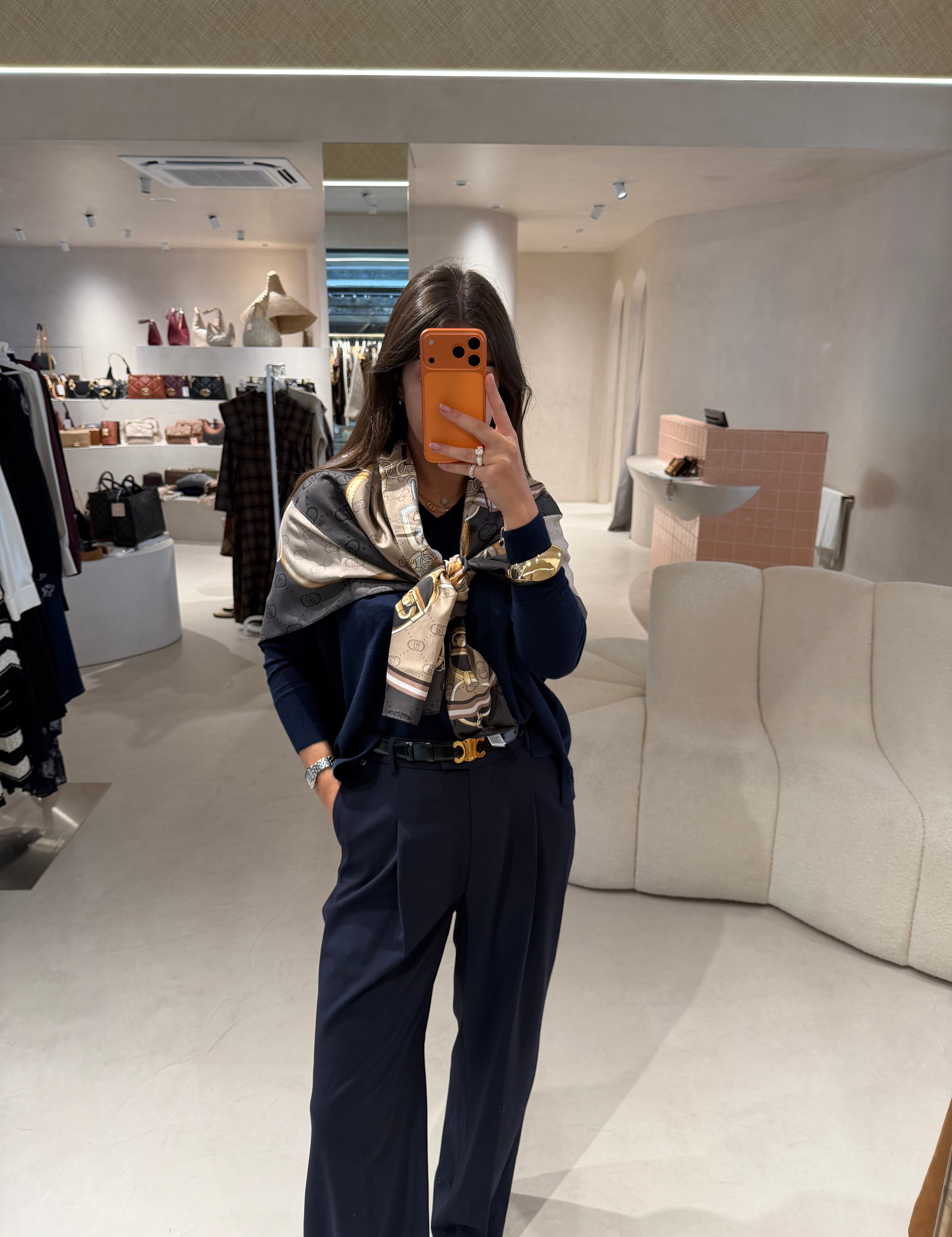 Casaco Midi Azul Marinho em Fazenda de Lã com Cinto | ottod'ame