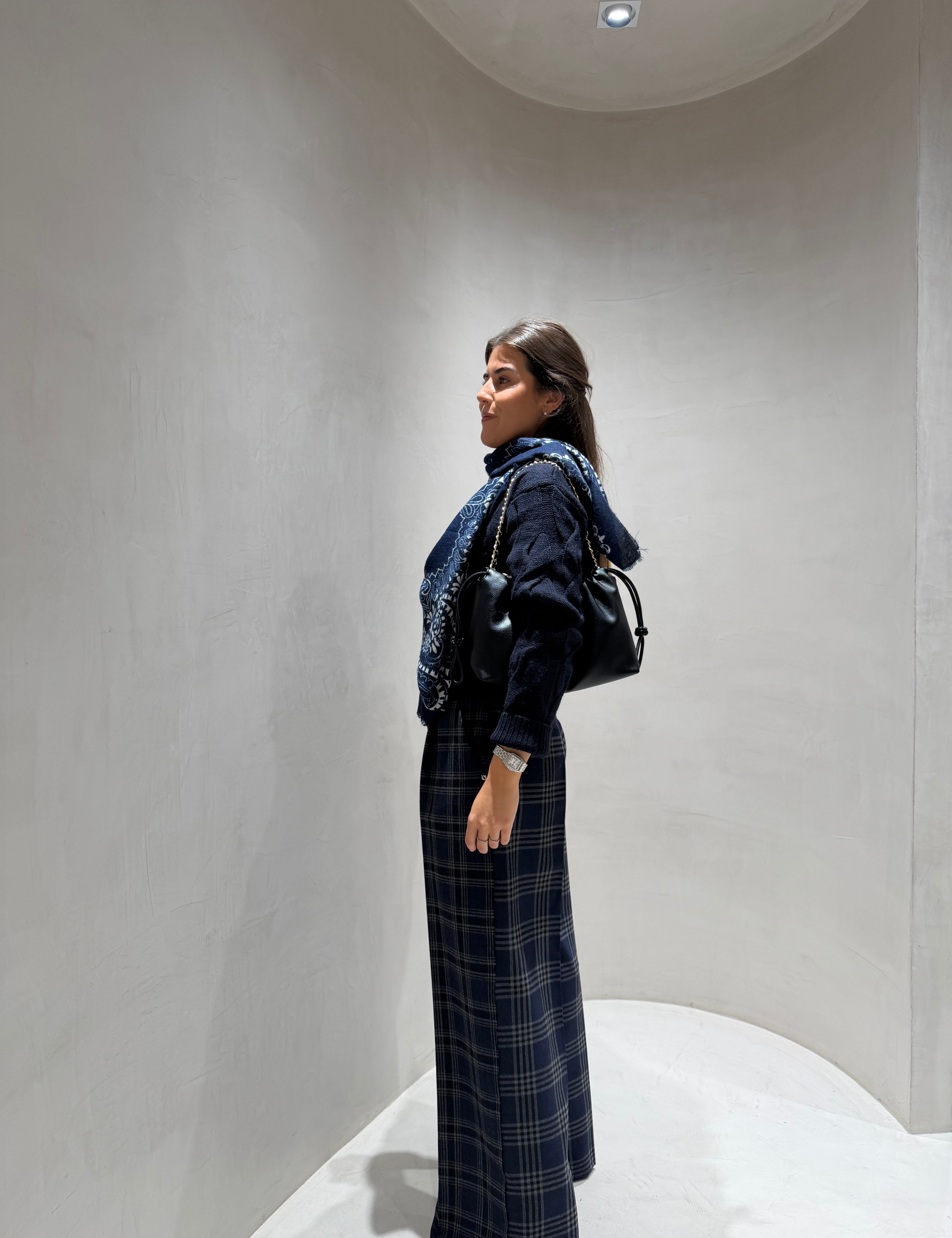 Camisola em Lã Merino Azul Marinho com Decote em V | ottod'ame