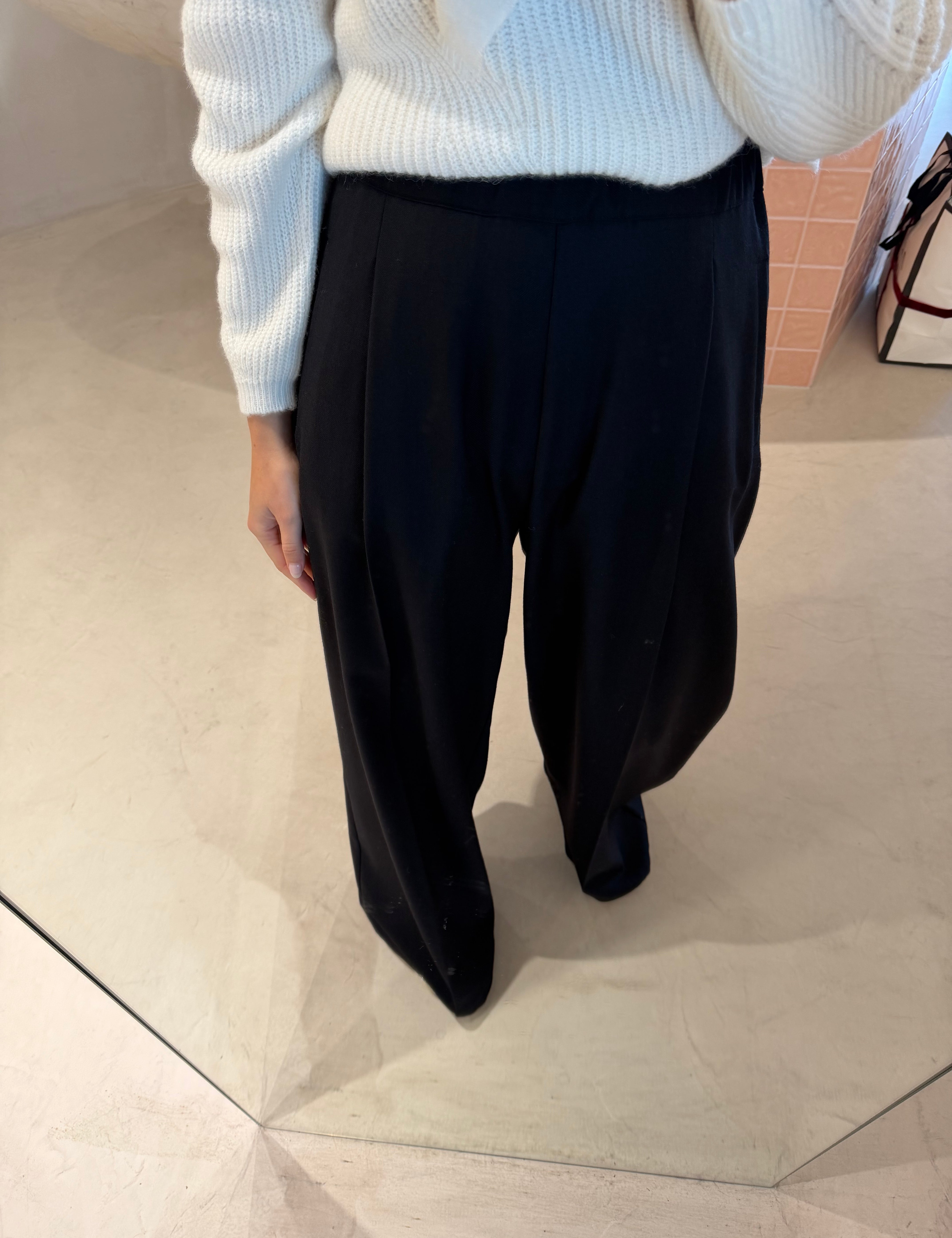 Calças Palazzo Preta em Lã Stefania | SEMICOUTURE