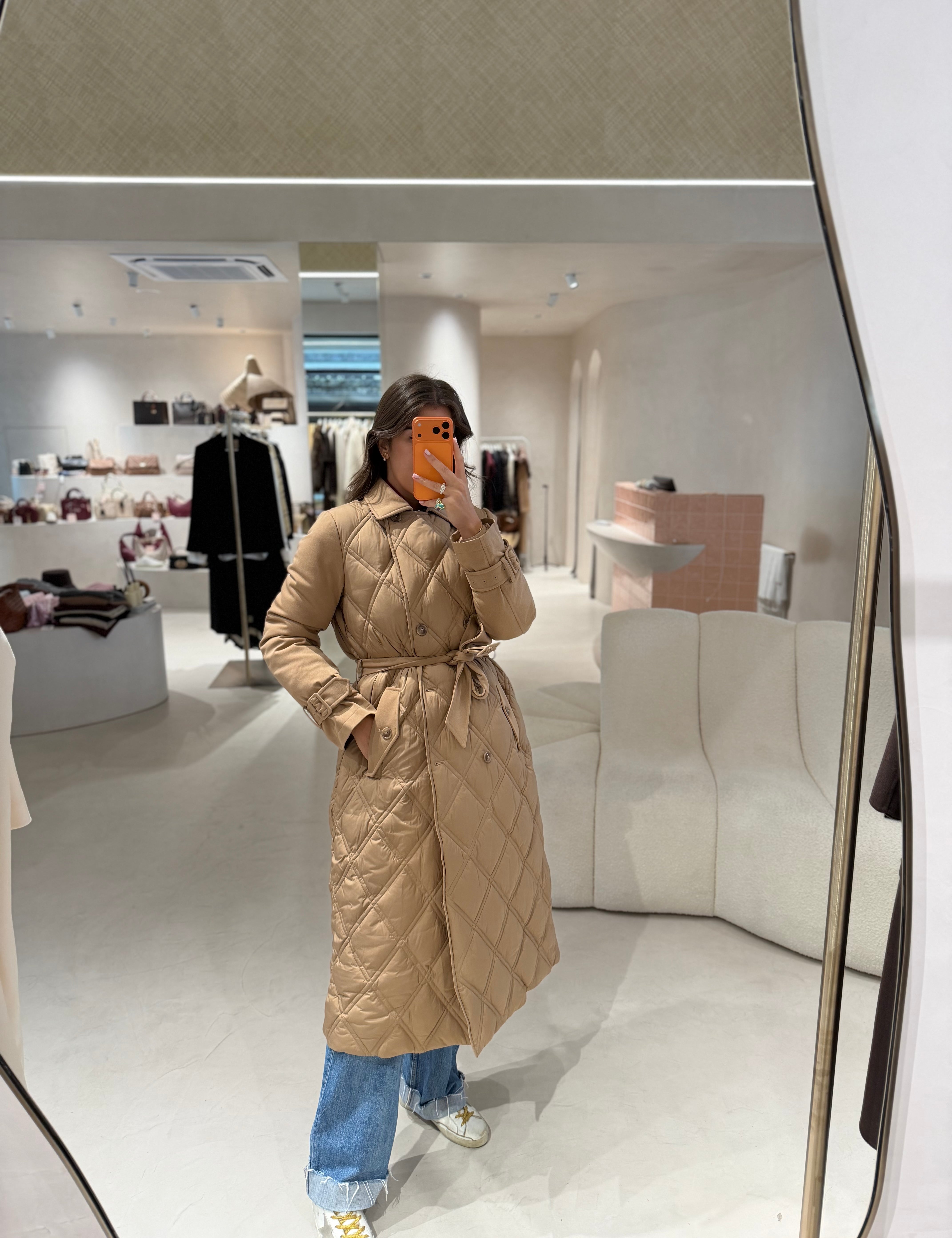 Casaco comprido acolchoado TWINSET em camel com mangas em tecido