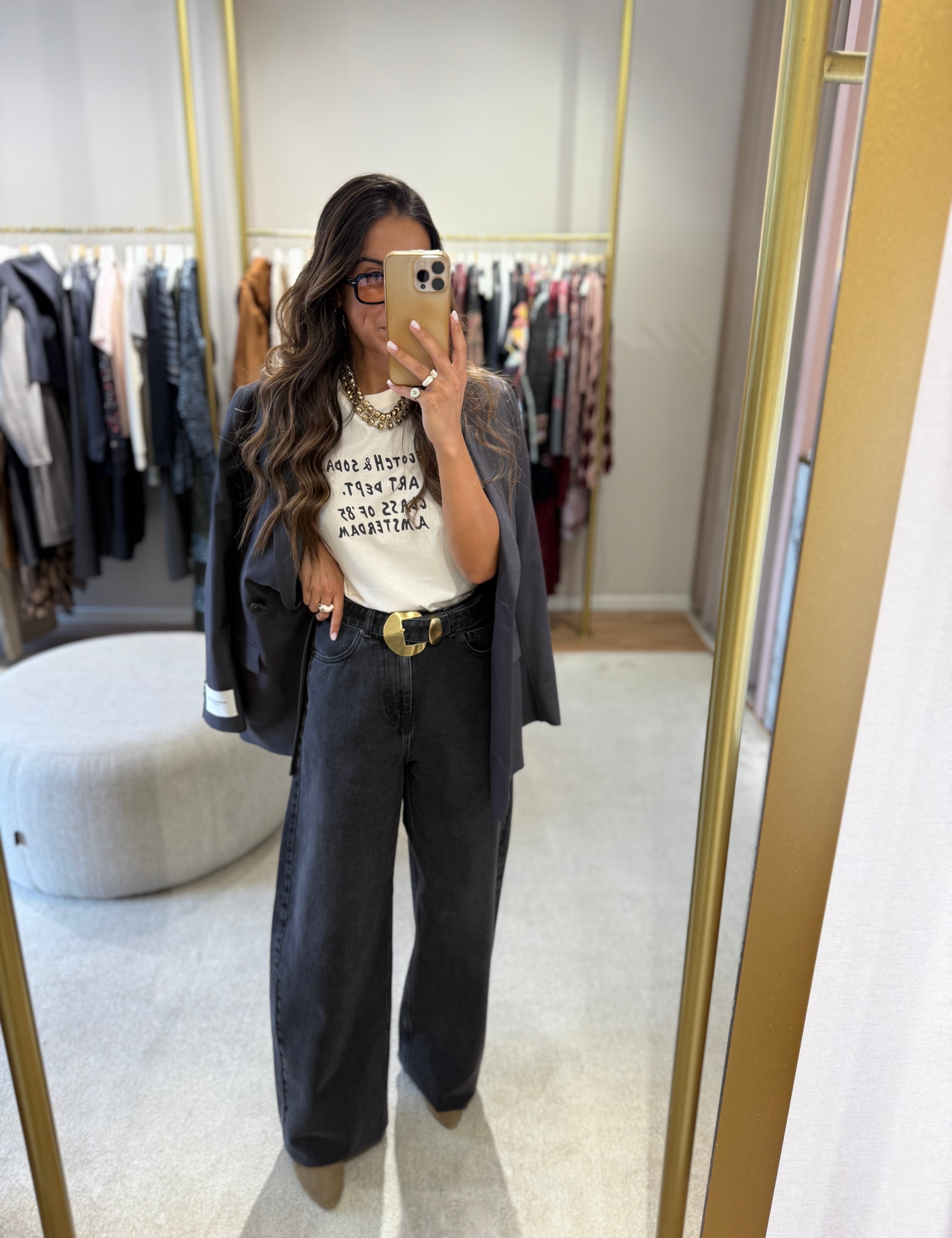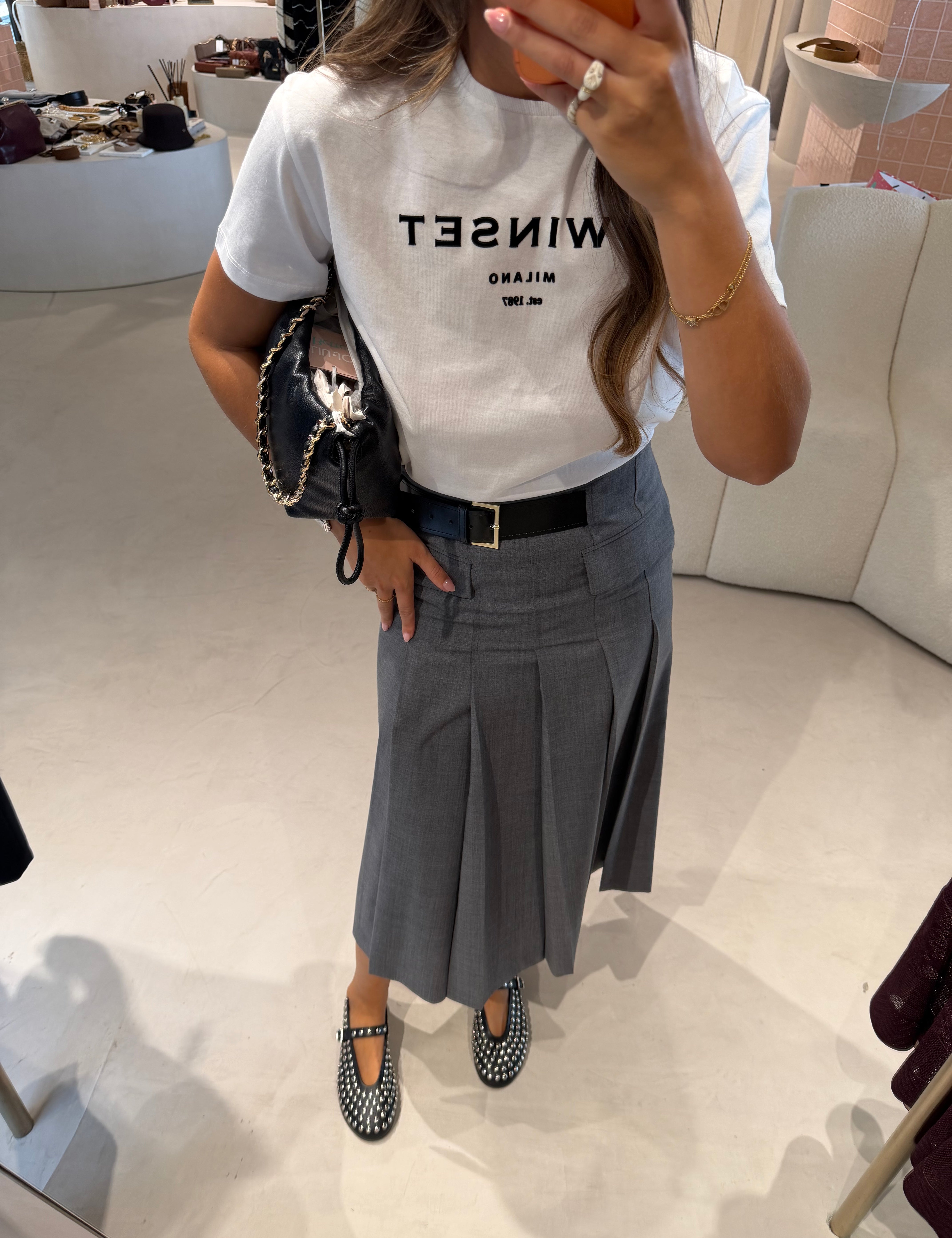 Jeans Cinza Wide com Cinto e Maxi Fivela | TWINSET