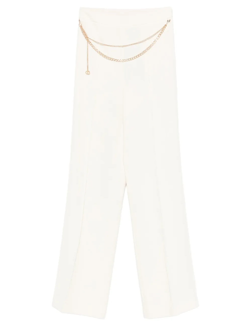 Calça Palazzo Ecru em Crepe com Cinto | TWINSET
