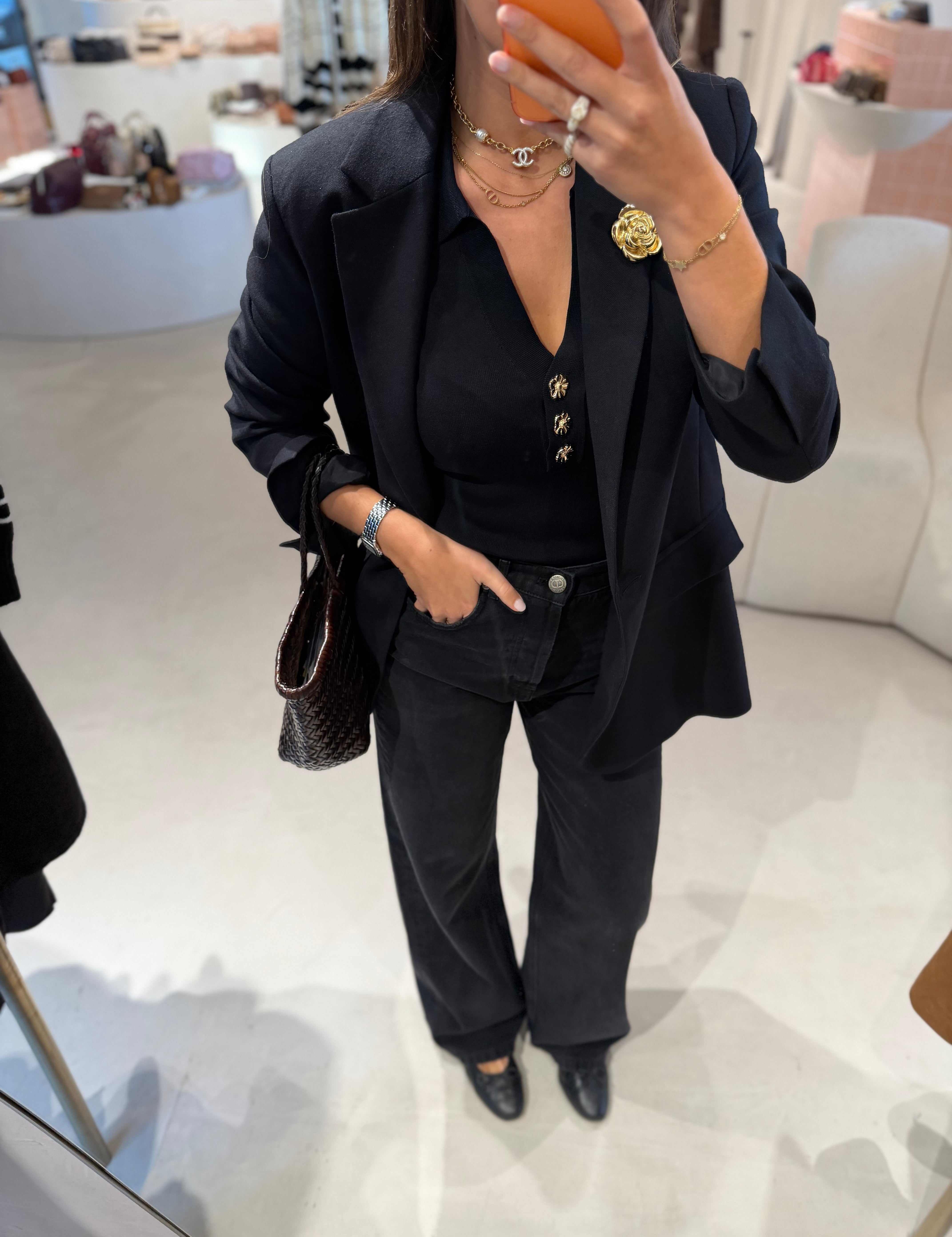 Polo Canelado Preto com Botões de Cristal | TWINSET