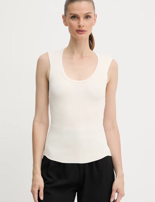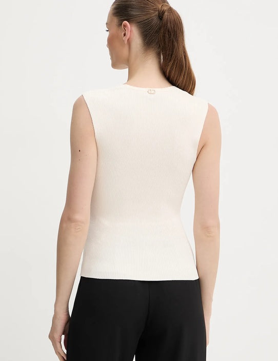 Top Slim Fit Canelado Ecru | TWINSET
