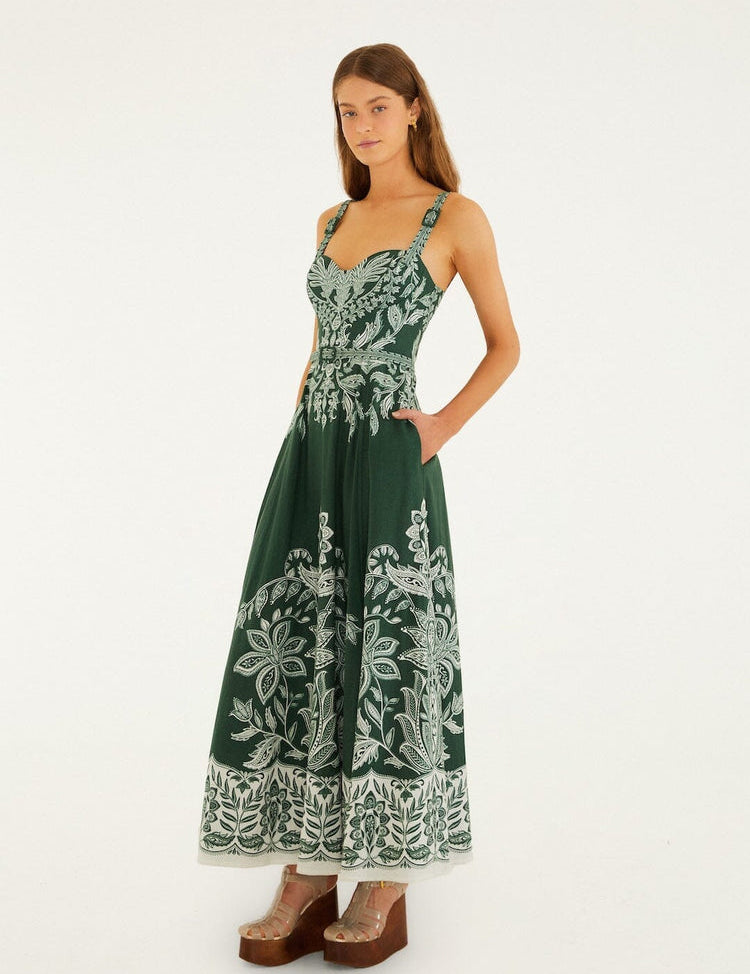 Vestido Maxi Verde Miranda com Fivelas | FARM RIO