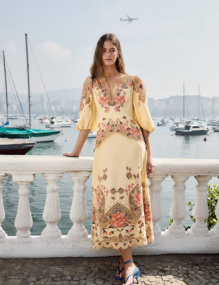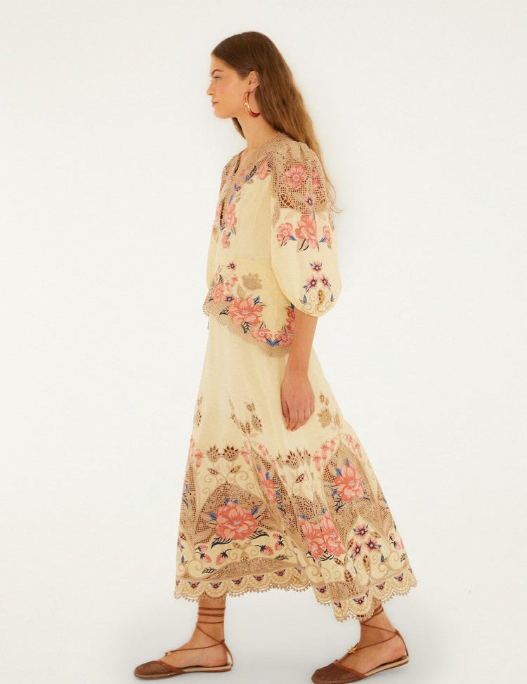 Vestido Midi Bordado de Manga Comprida | FARM RIO
