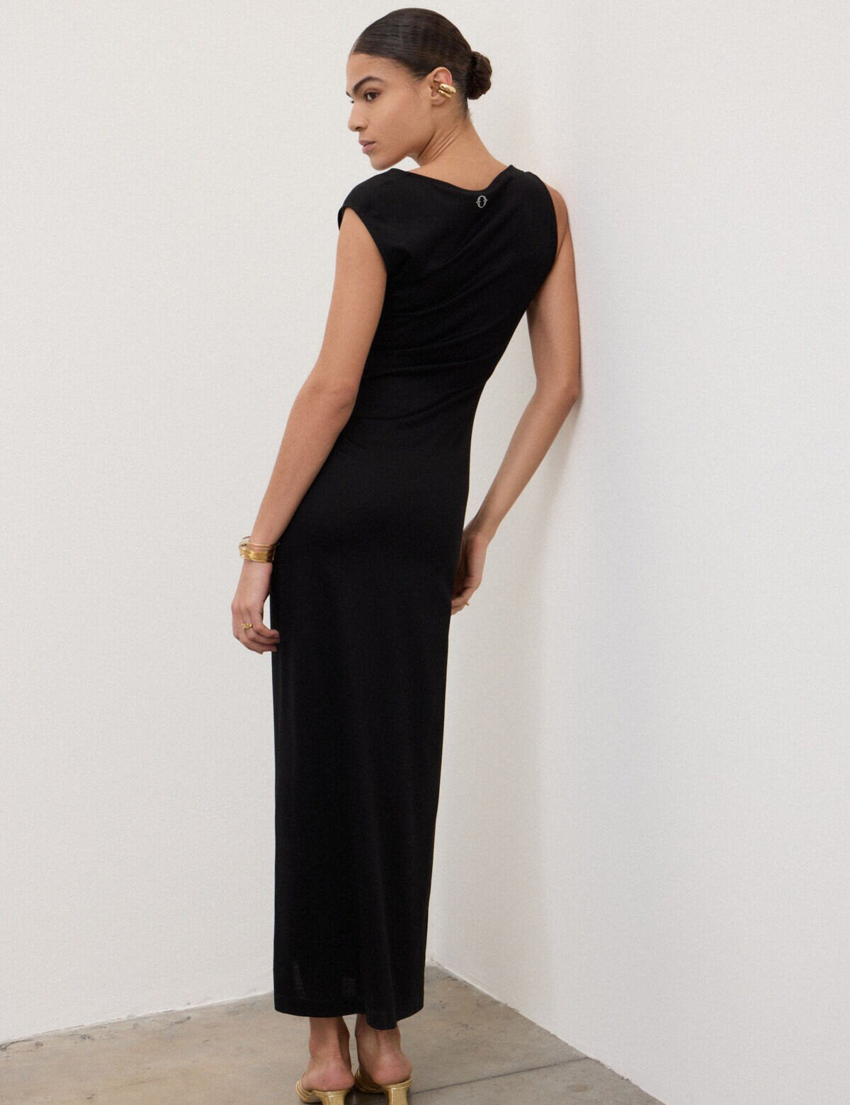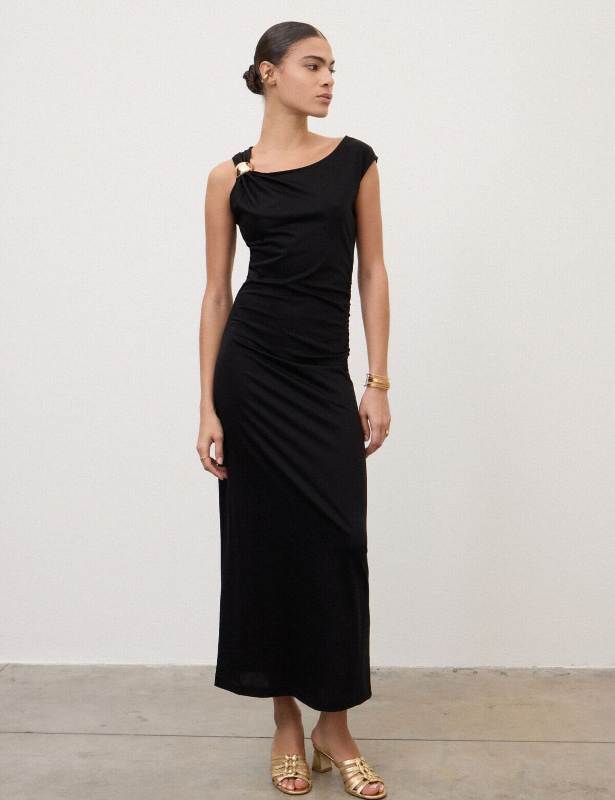 Vestido Longo com Drapeados em Preto | Ottod'ame