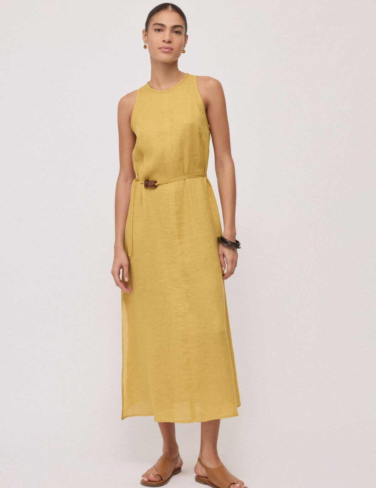 Vestido Midi em Linho Mostarda | Ottod'ame