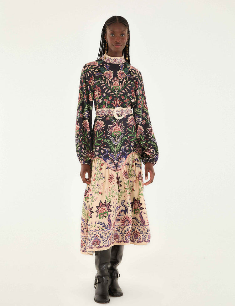 Vestido Midi Boho Chic Estampado com Fios Dourados Pierta | ba&sh