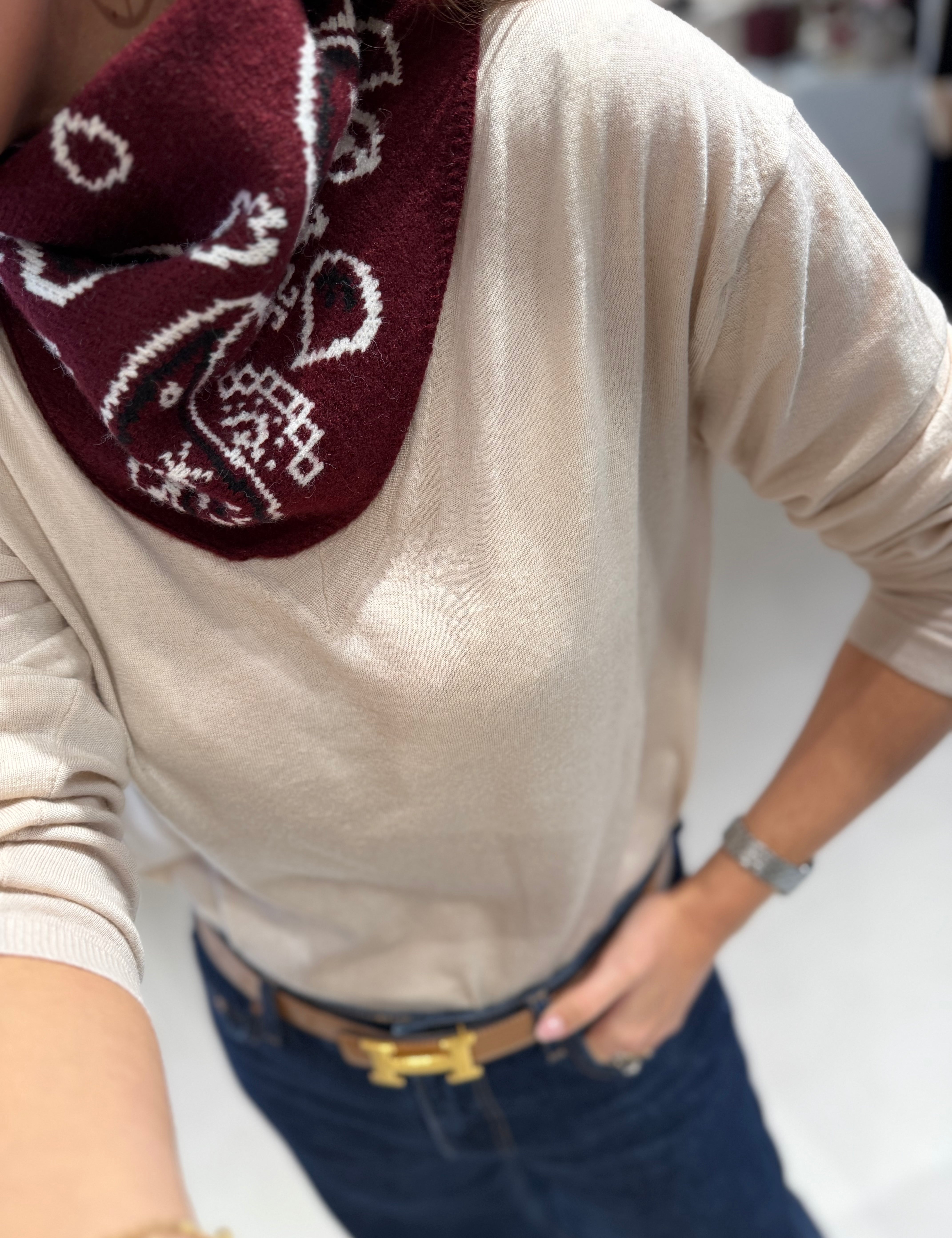 Bandana Triangular Malha com Caxemira Bordeaux | VIOLETA