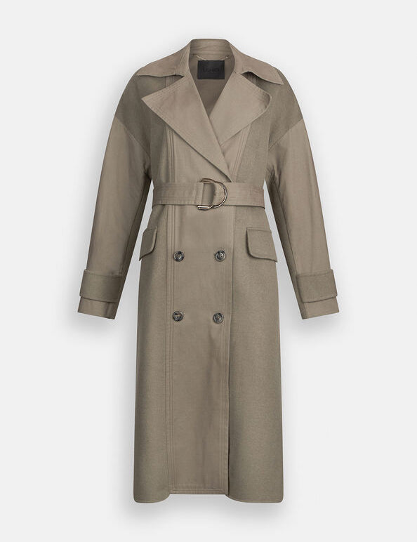 Casaco Estilo Trench Duplo em Fazenda de Lã Kaki | Liu Jo