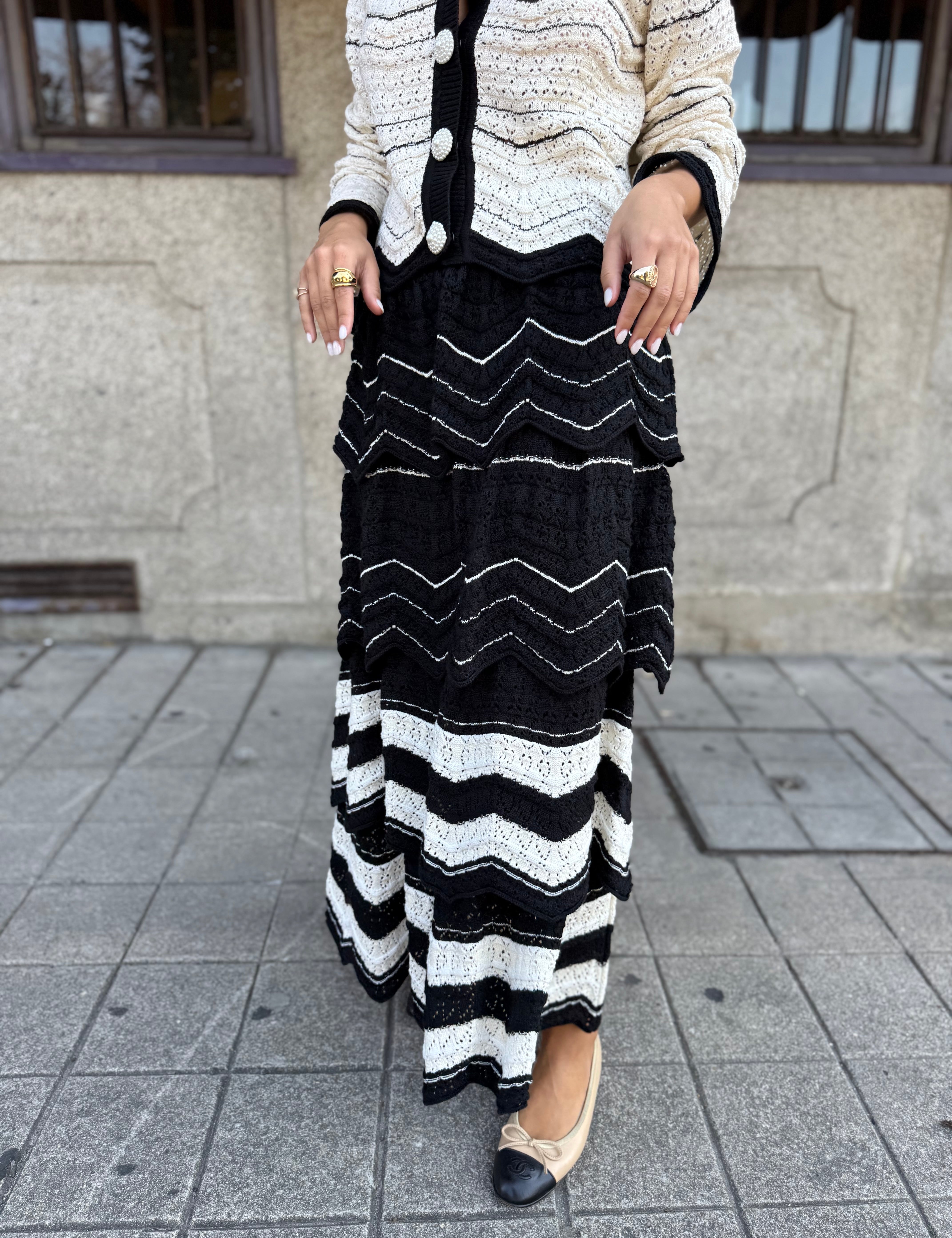 Saia em Tricot Preta e Branca com Folhos Janaína | CECILIA PRADO