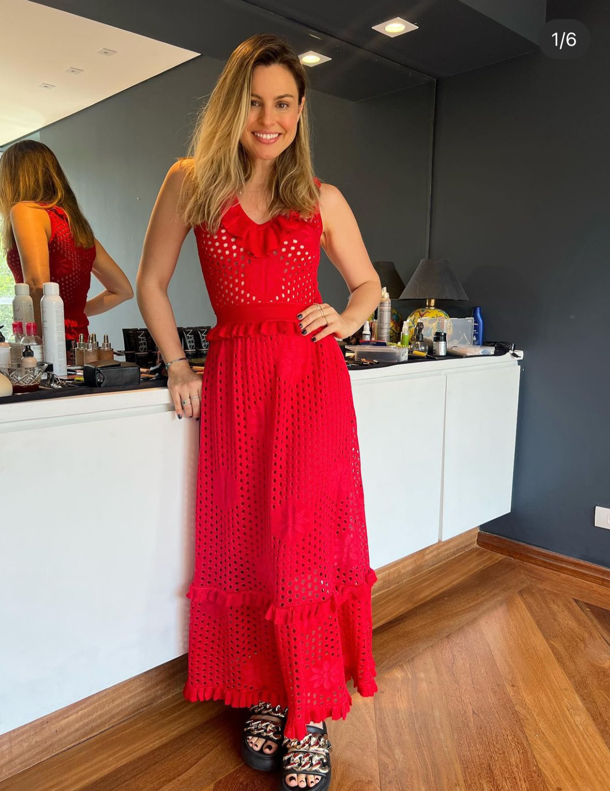 Vestido midi Cecilia Prado em malha tricotada rosa