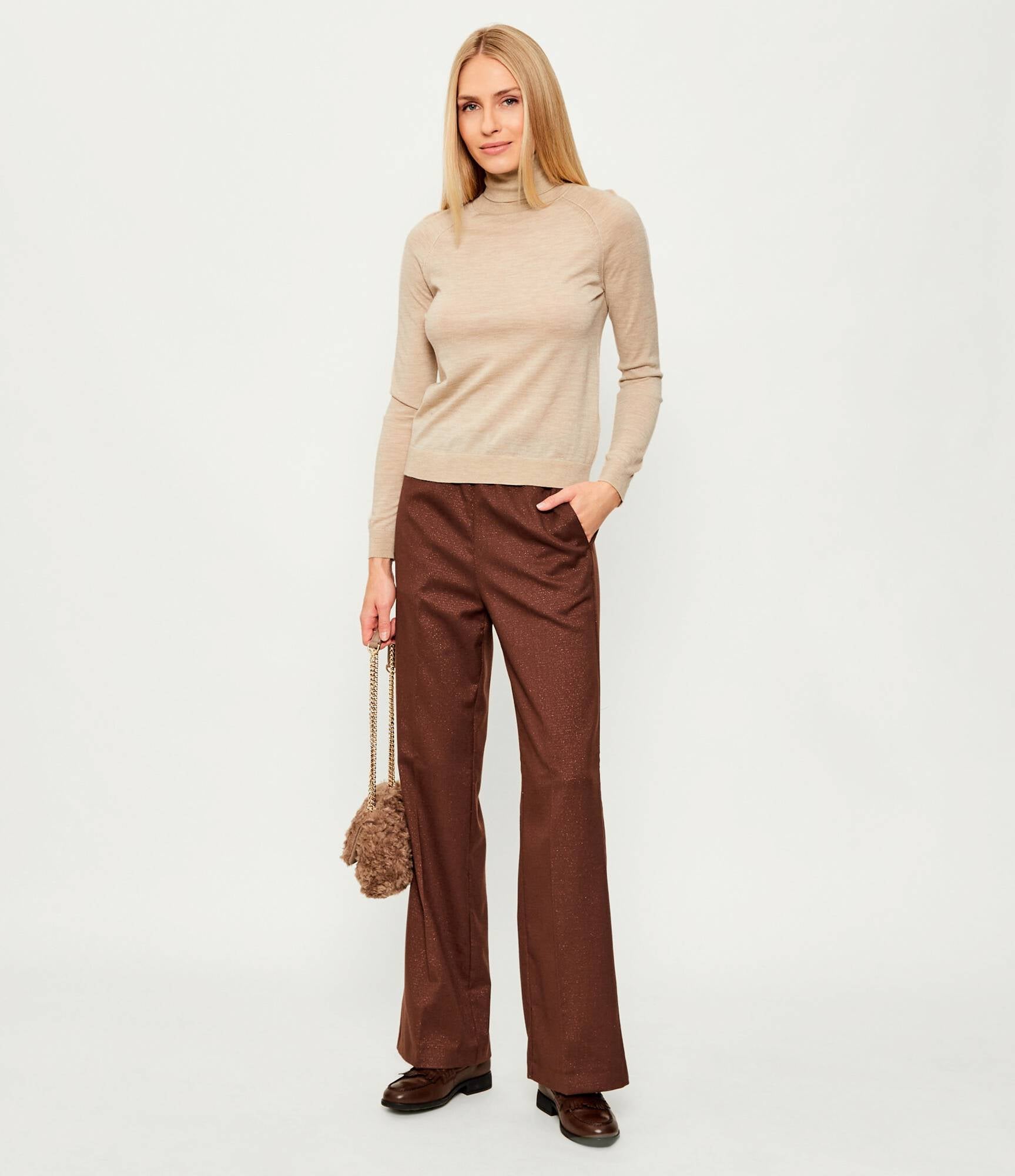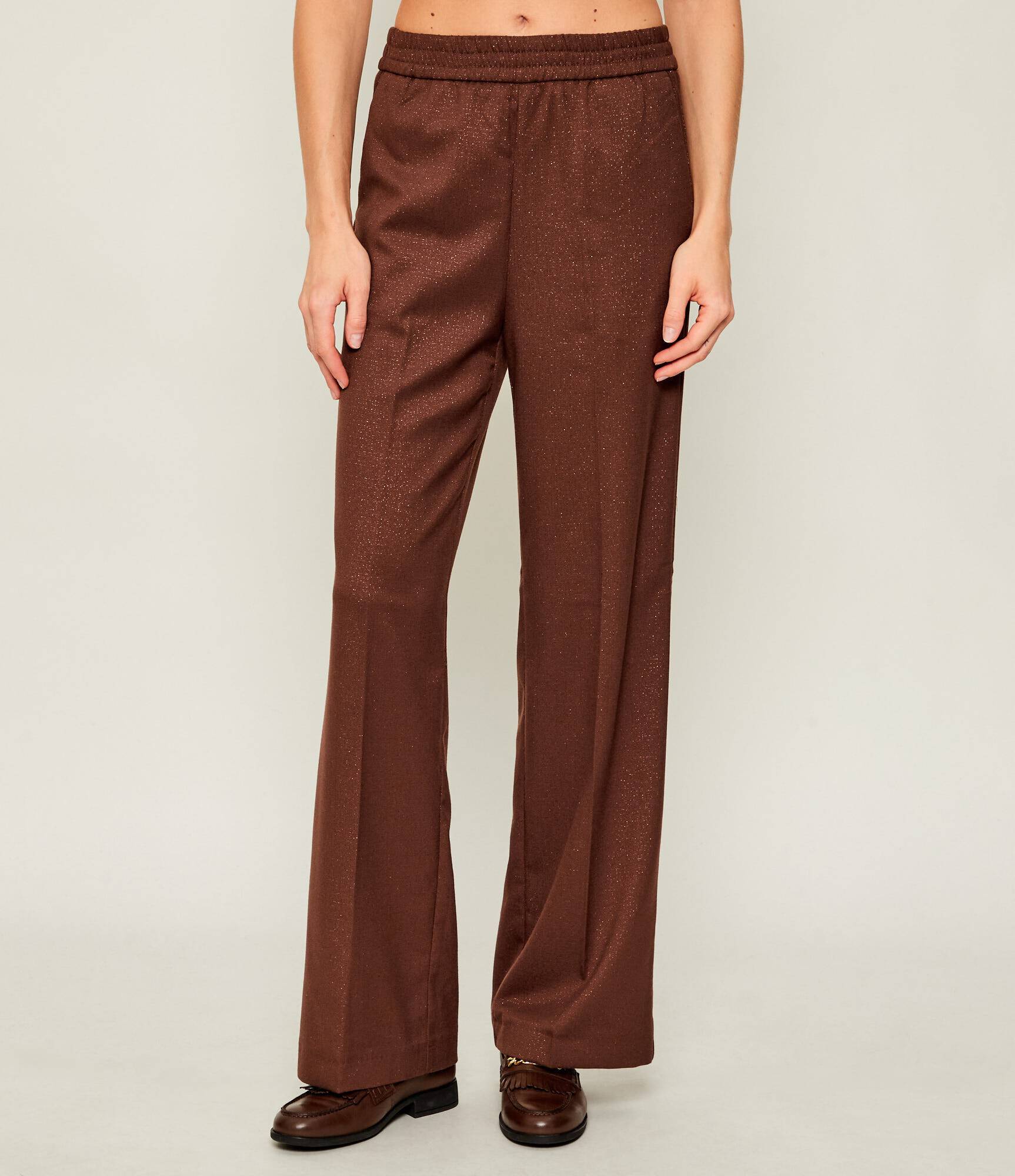 Calça Palazzo Castanho com Fio Lurex | Liu Jo