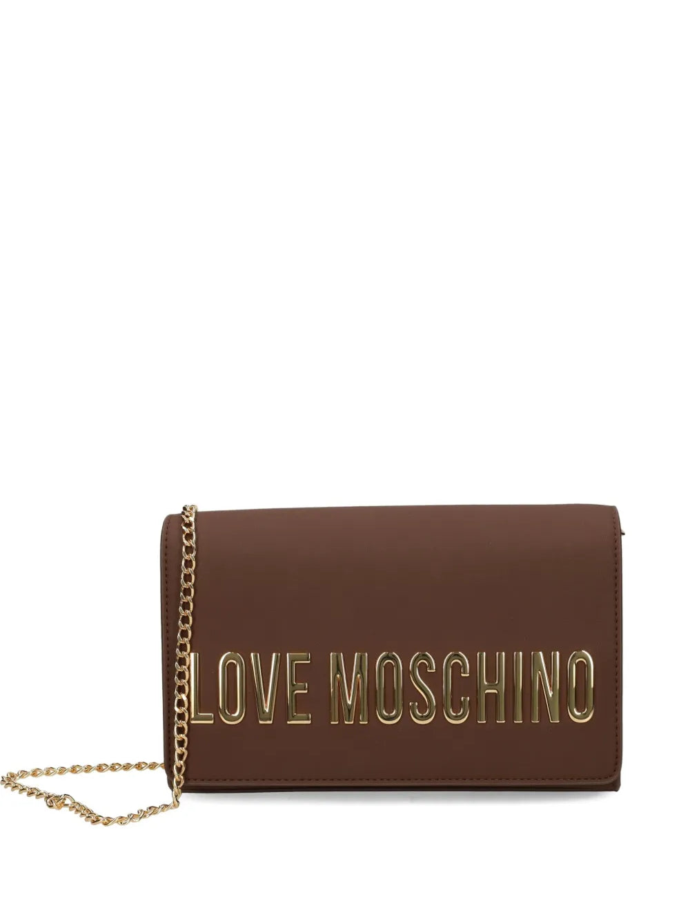 Mala de ombro em castanho com logo metálico | Love Moschino