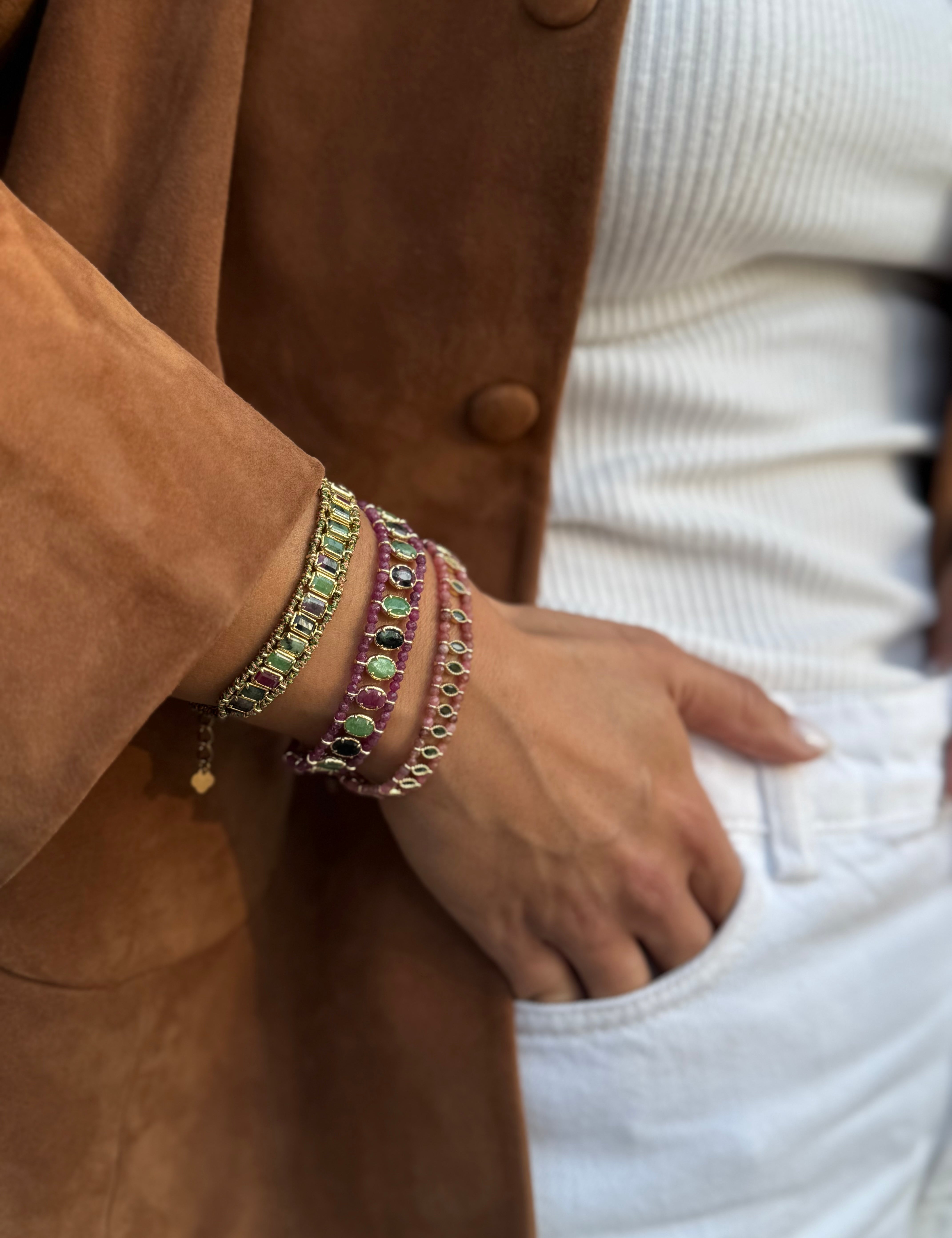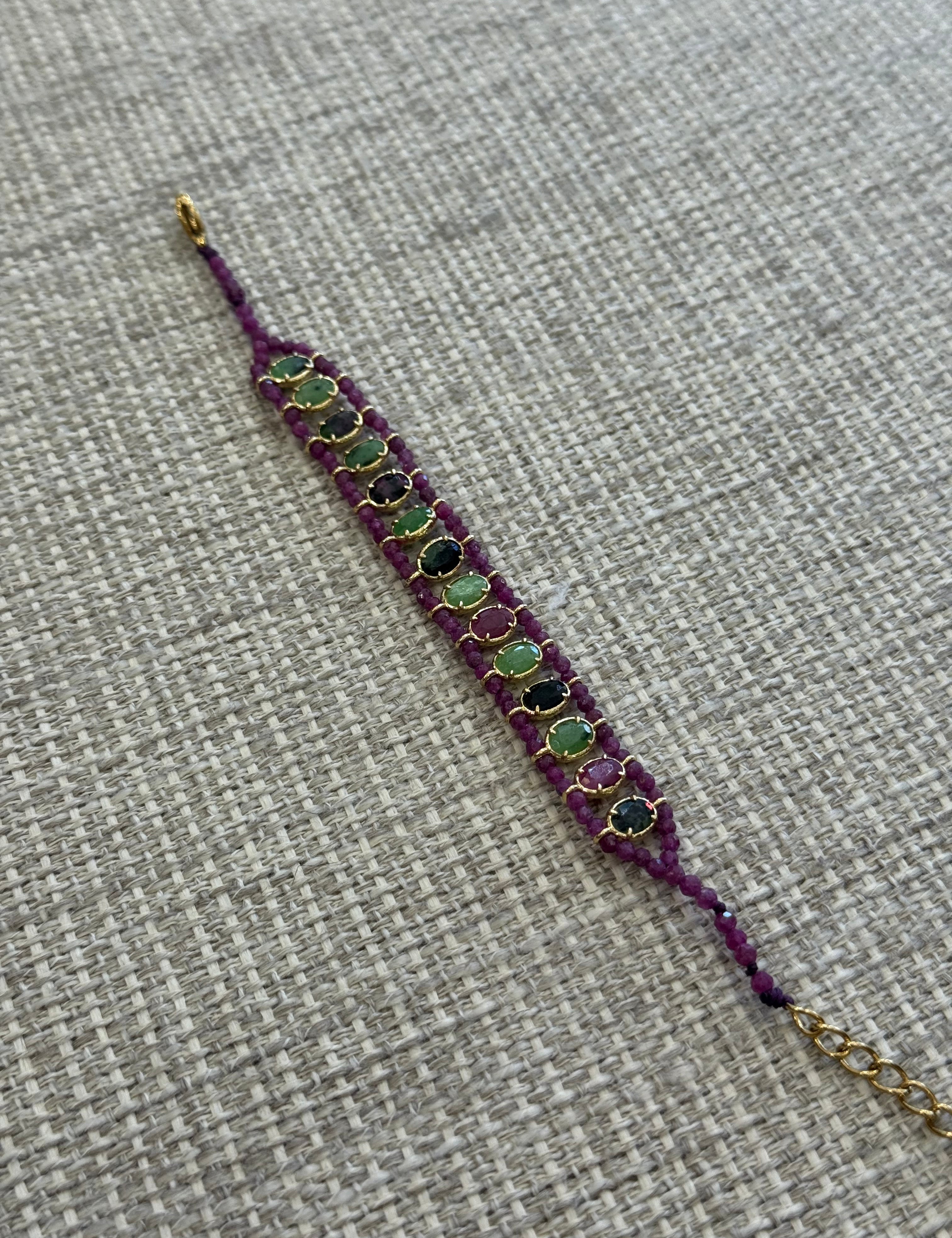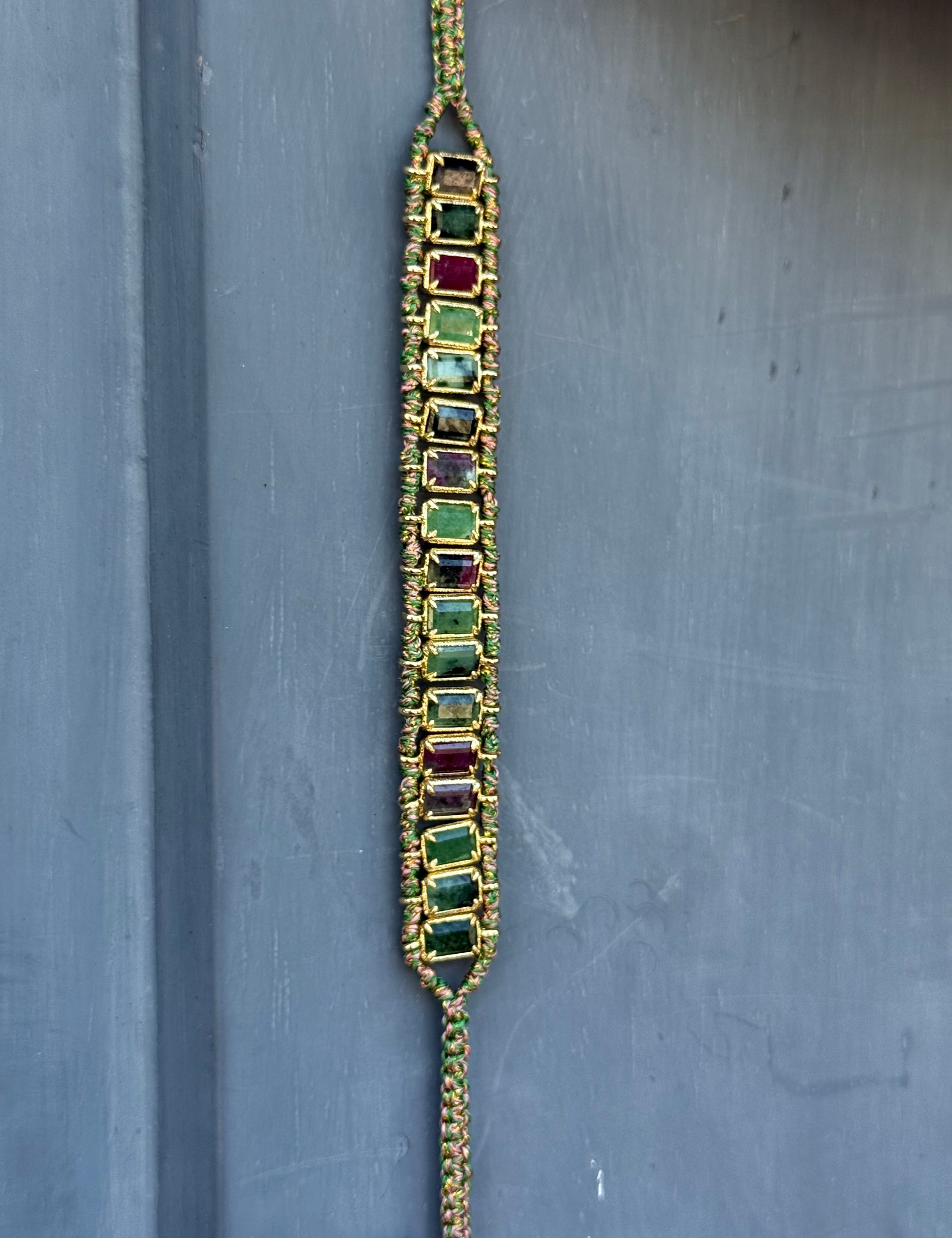 Pulseira Trançada com Pedras Retangulares de Rubi Zoisita