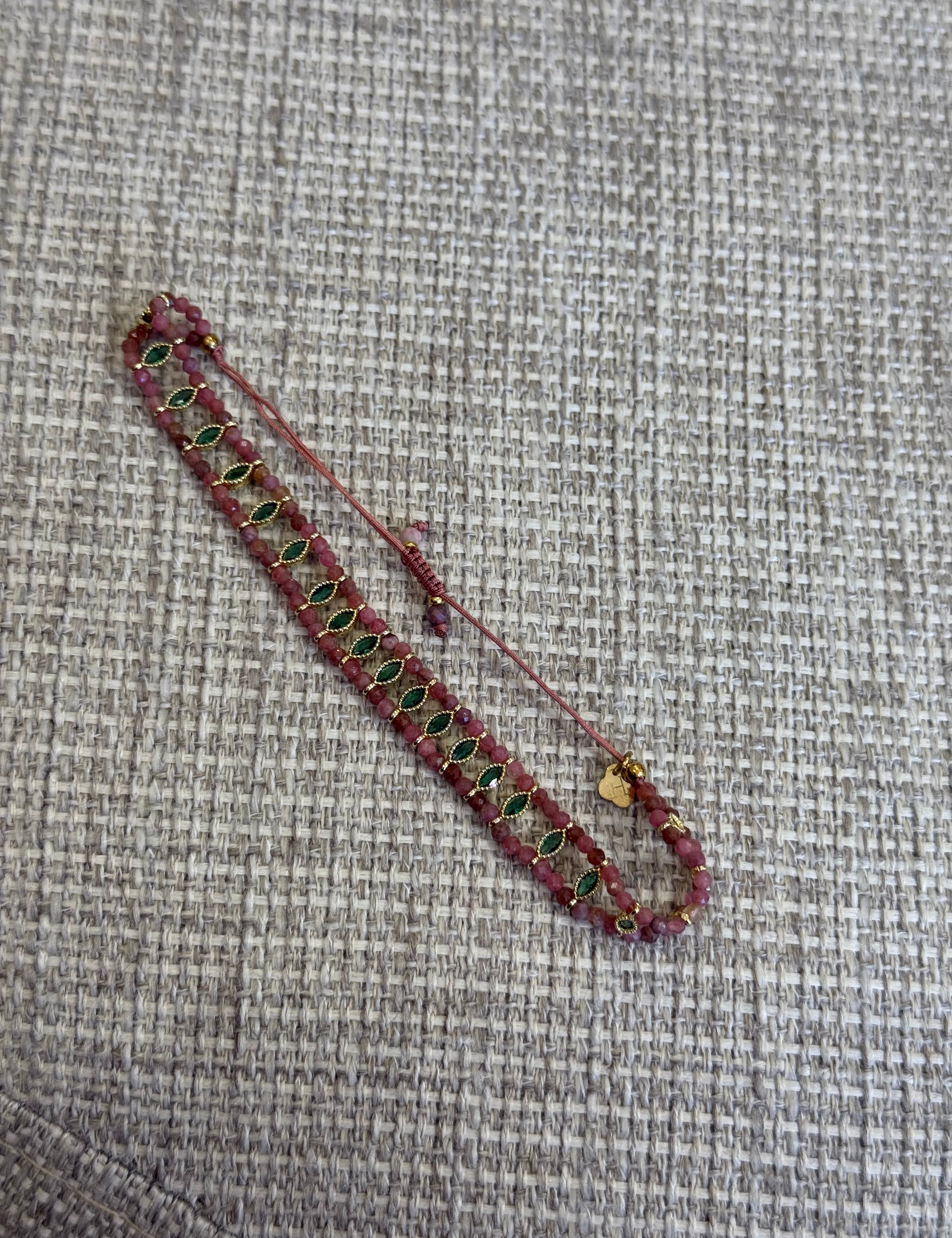 Pulseira de Dois Fios com Pedras Naturais Rosa e Verde