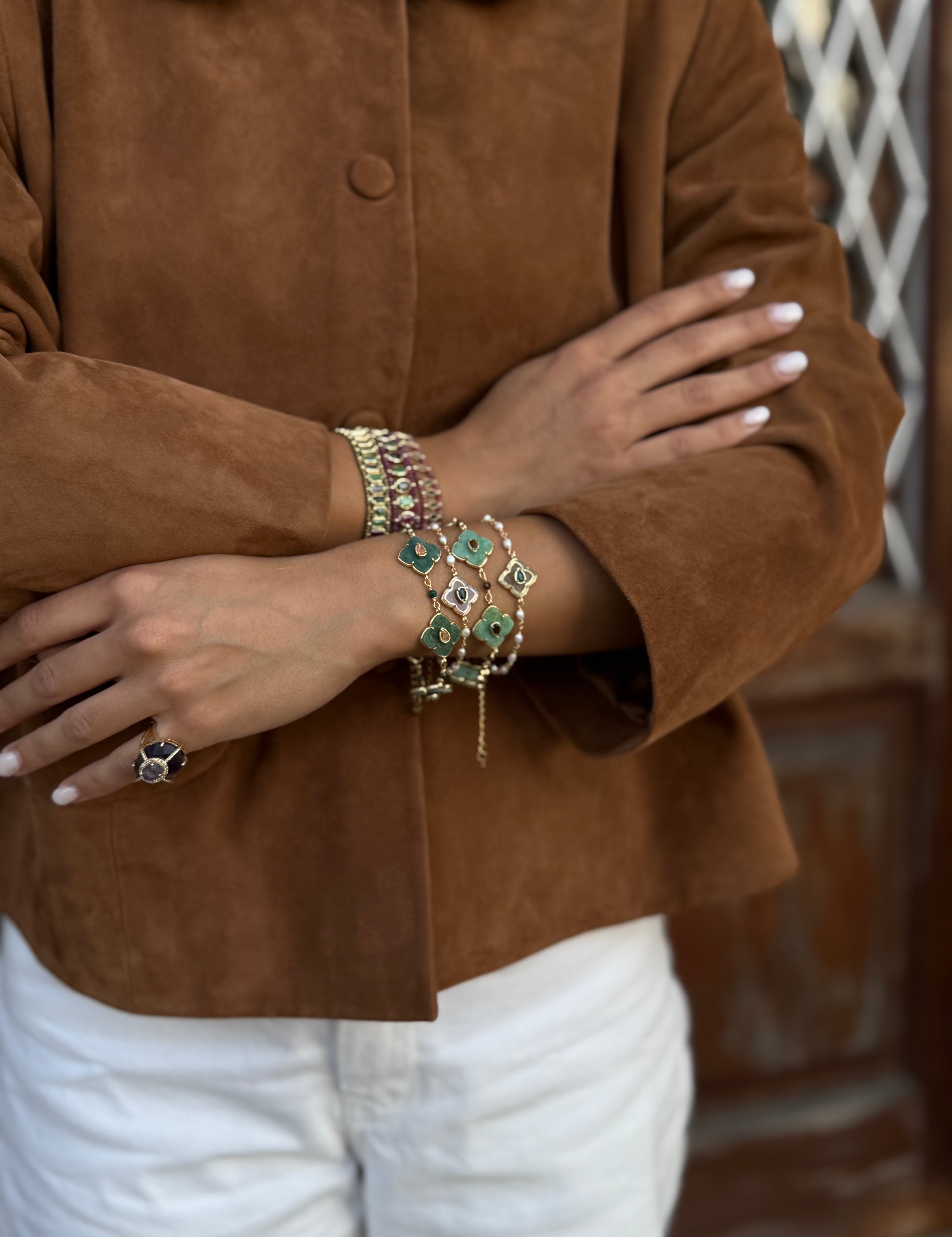 Pulseira de Corrente com Trevo e Pedras Naturais – Verde Escuro
