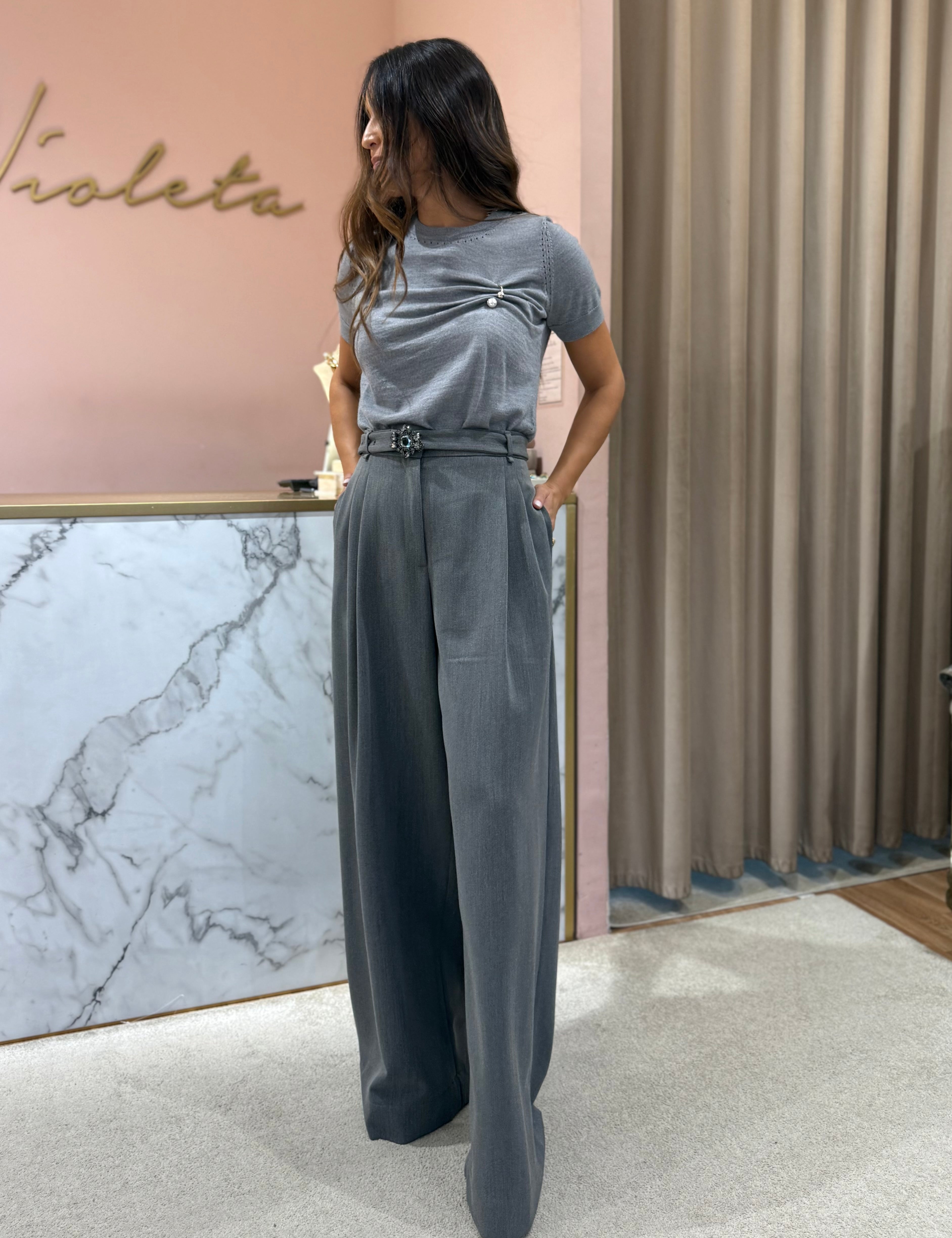 Camisola com Decote em Bico em Malha de Lã Cinza | Liu Jo