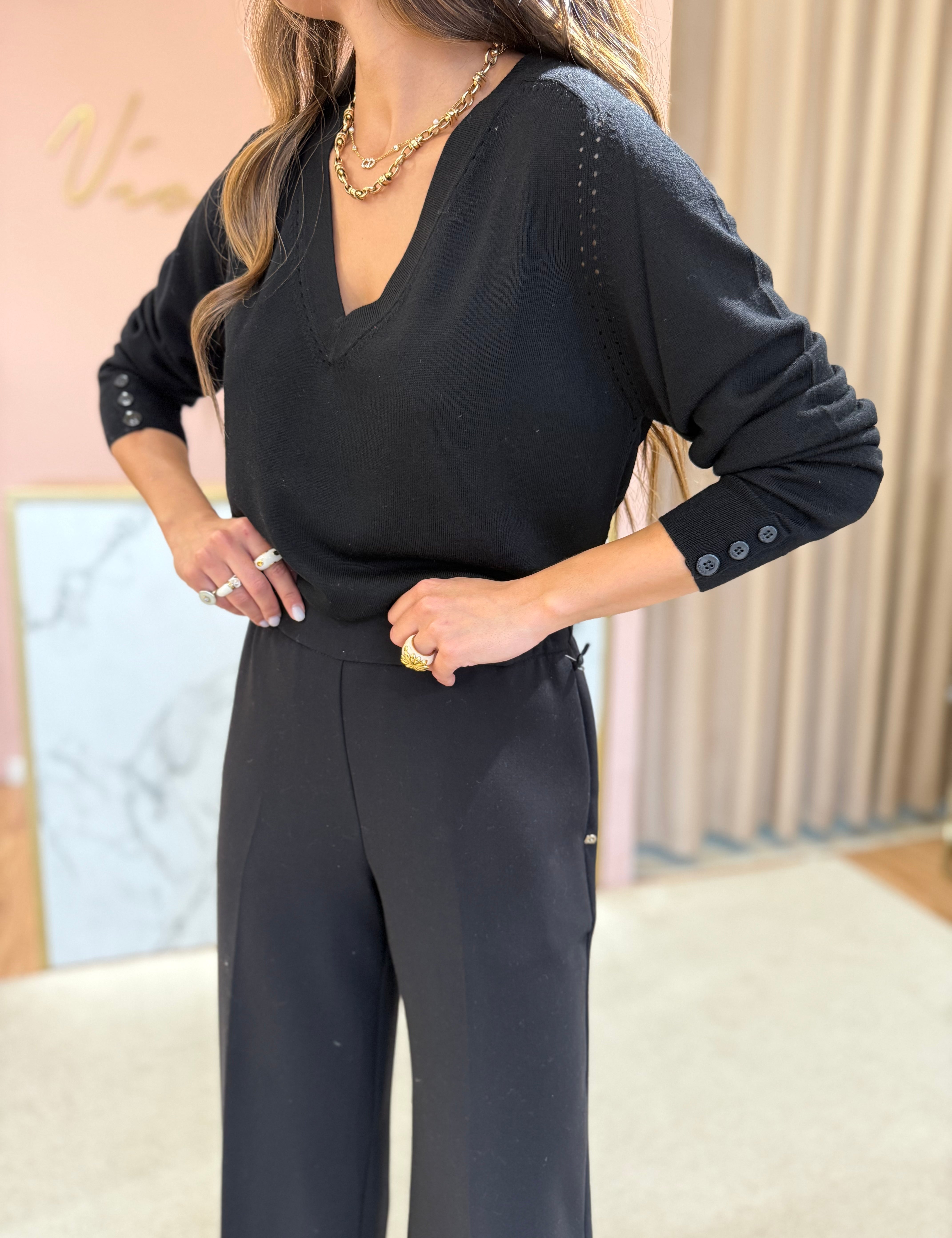 Camisola com Decote em Bico em Malha de Lã Preta | Liu Jo