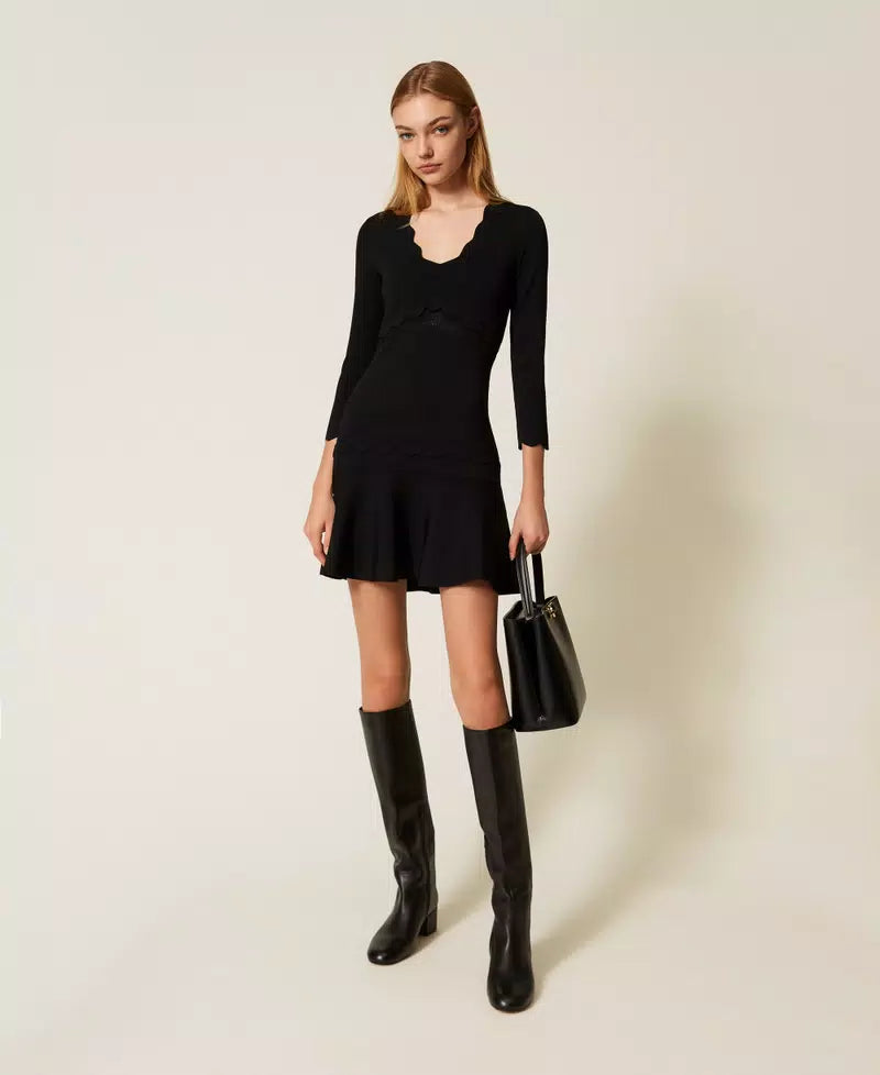 Vestido Curto Malha Fria com Detalhes Ondulados | TWINSET