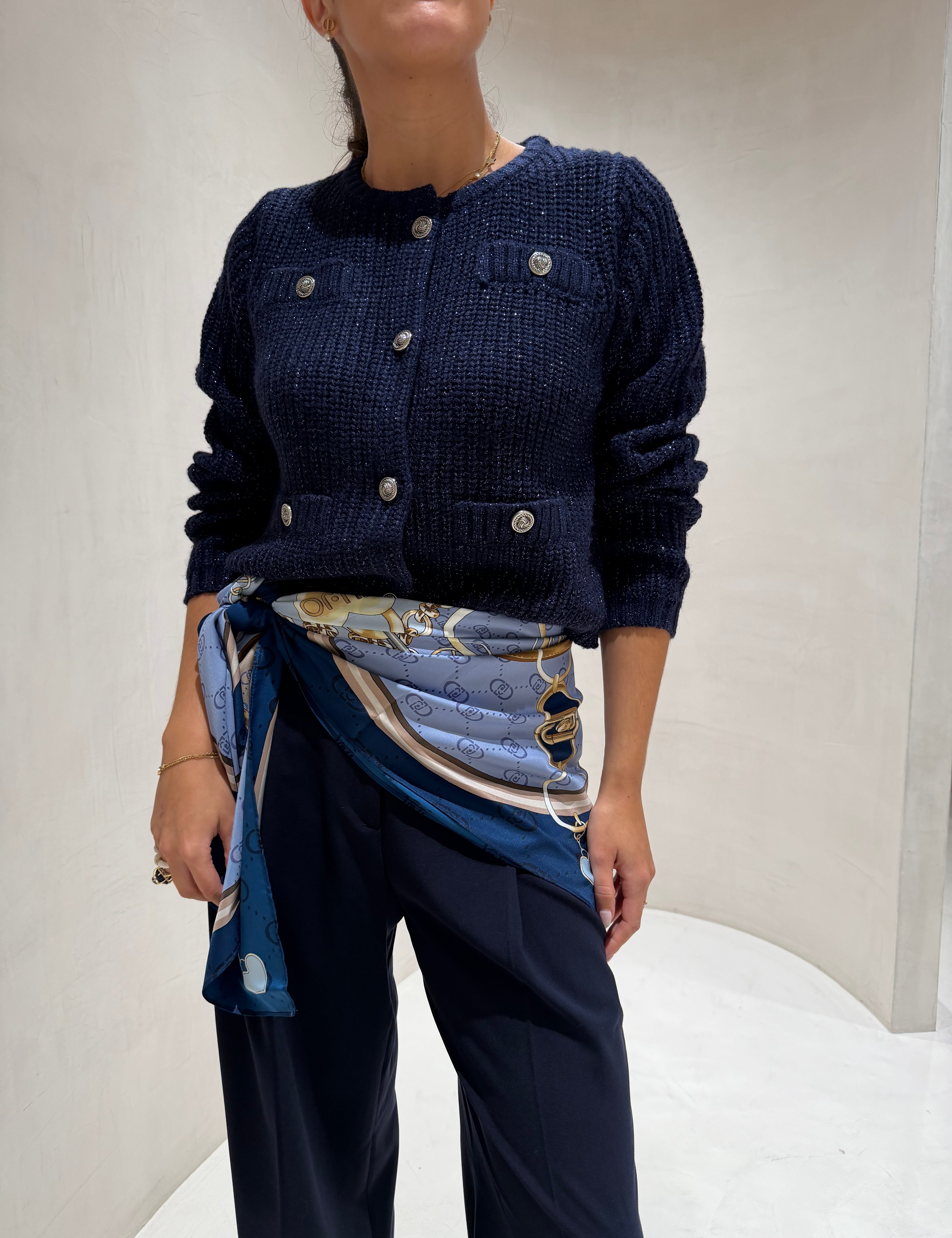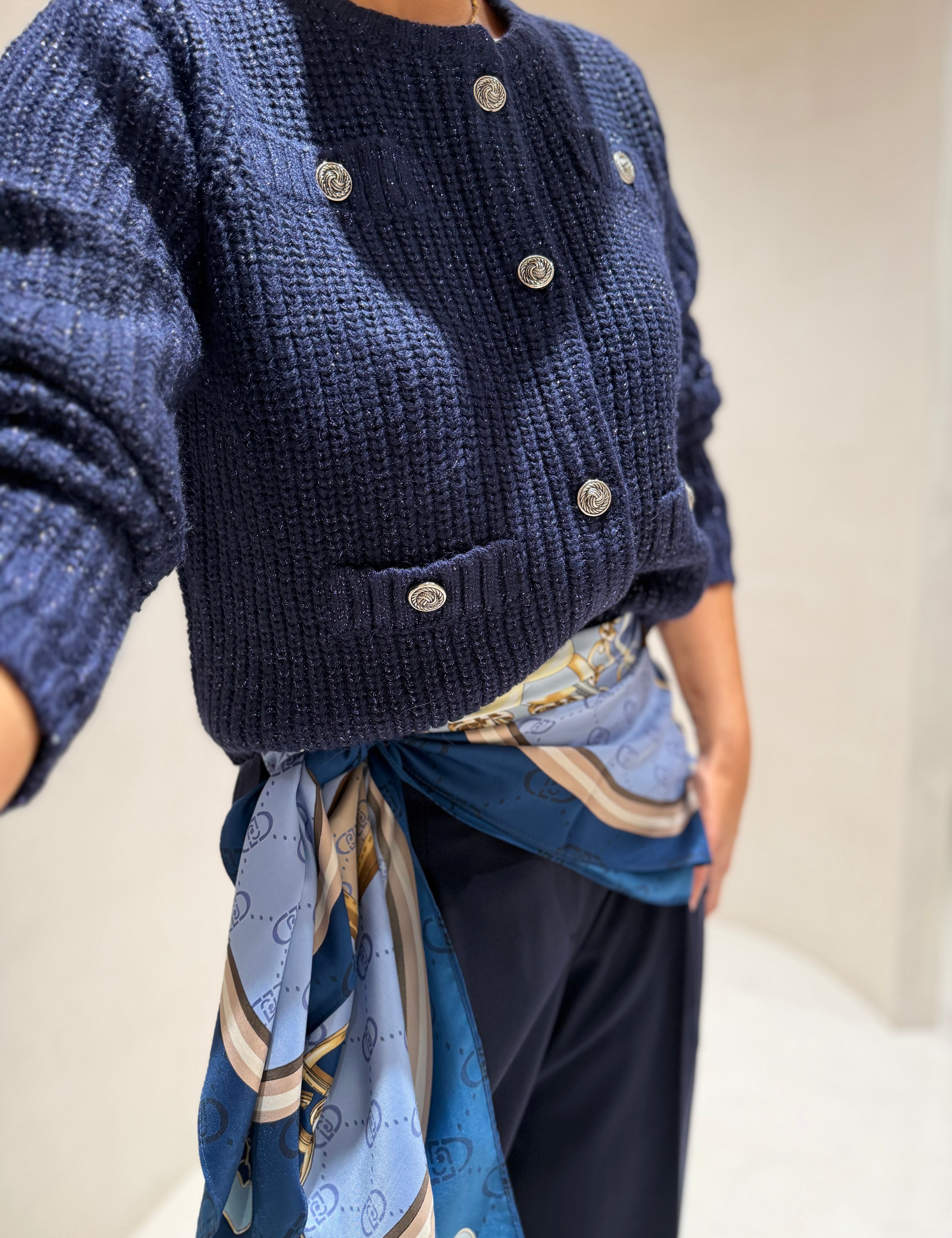 Cardigan em Mistura de Alpaca e Lã Azul Marinho com Fio Lurex | Liu Jo