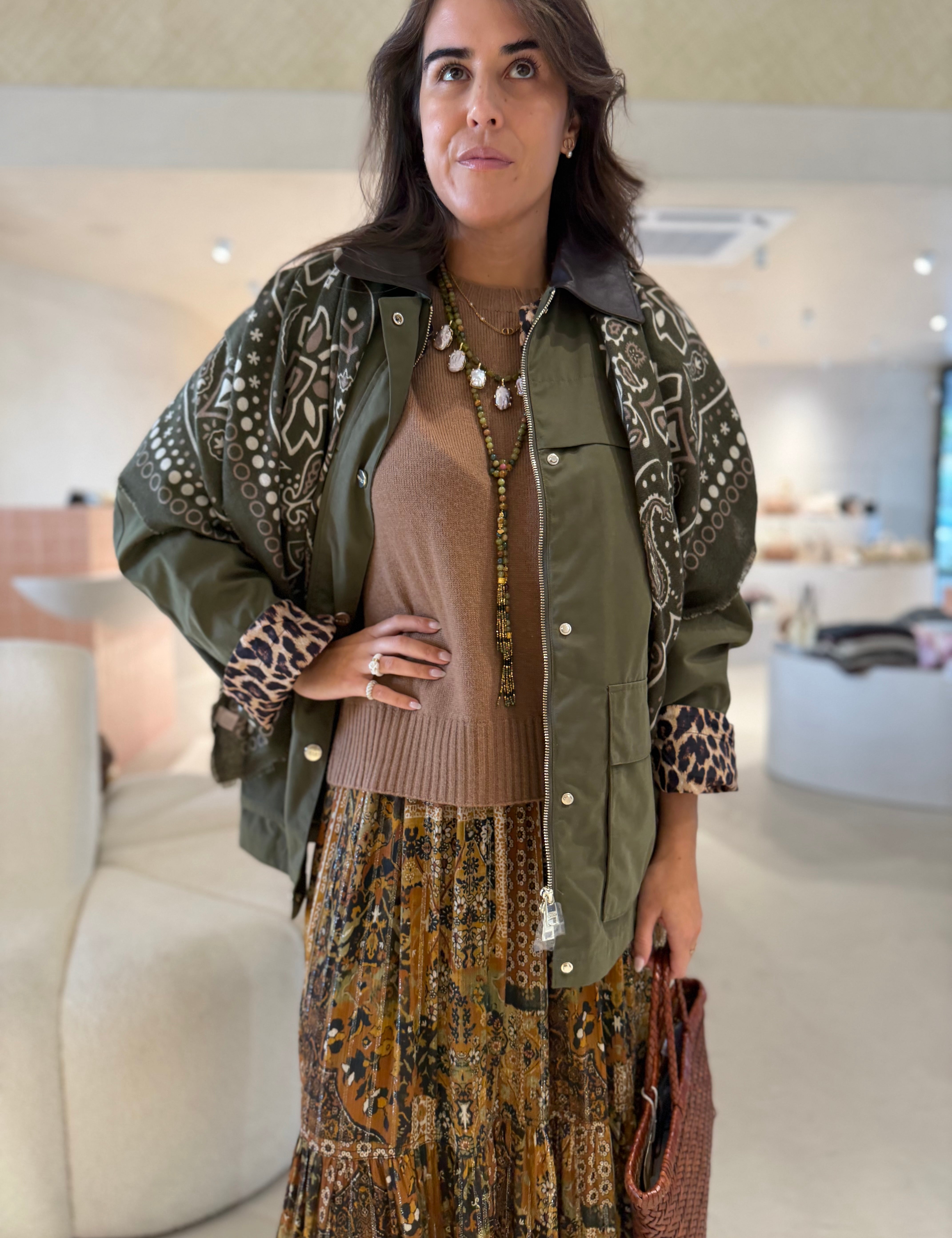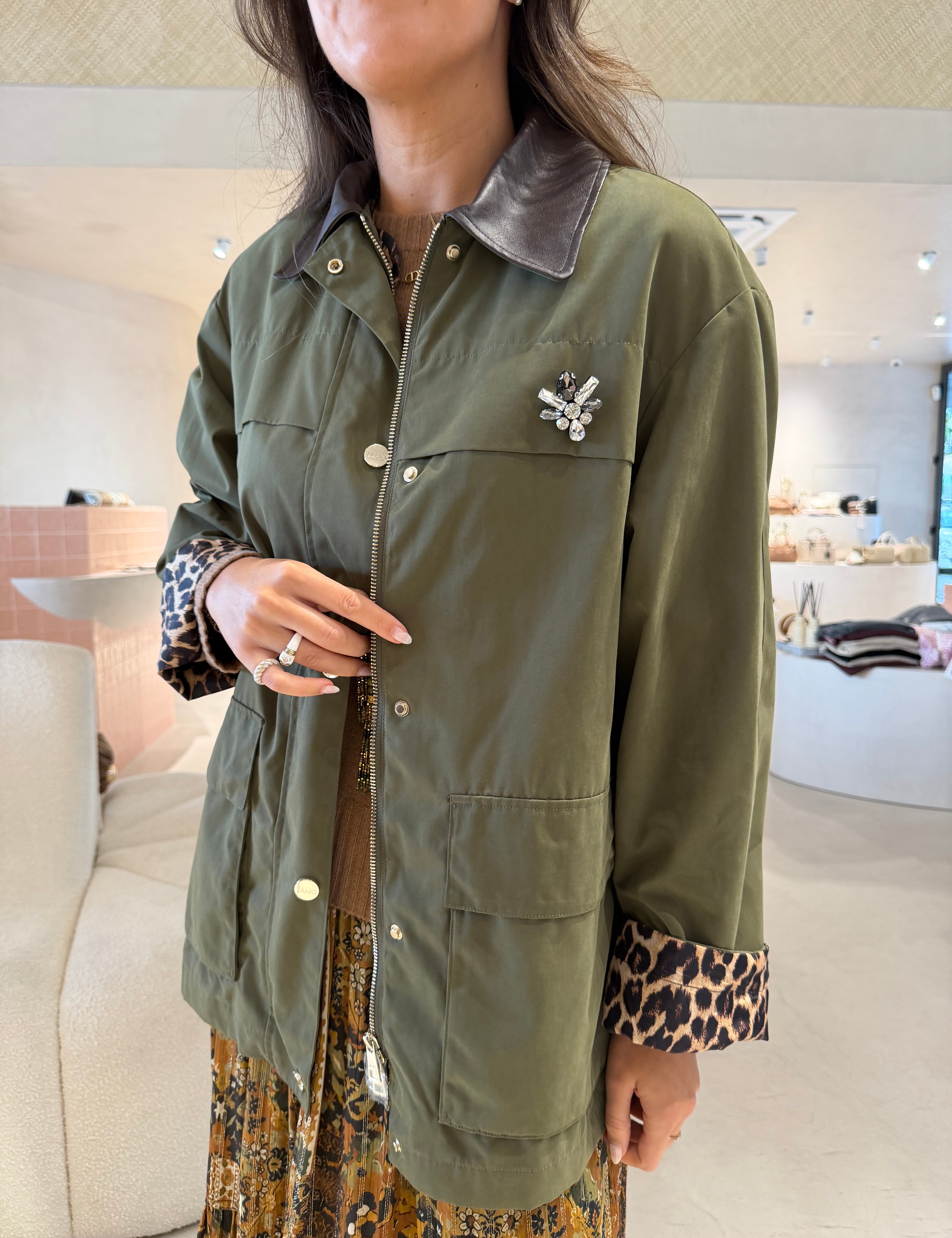 Parka Kaki com Gola Castanha e Aplicação de Brilhante | Liu Jo