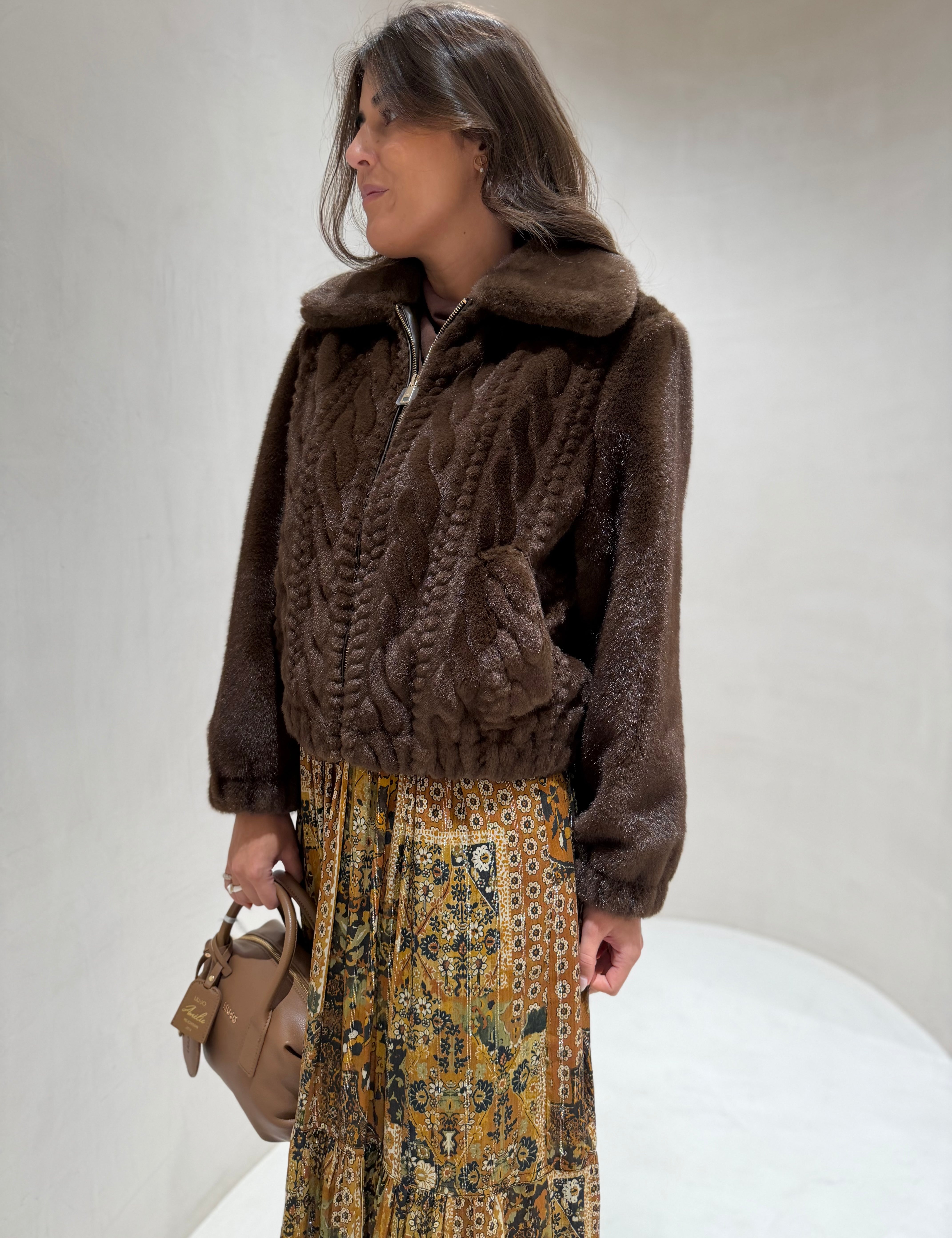 Bomber Castanho em Pêlo Sintético Tricotado | Liu Jo