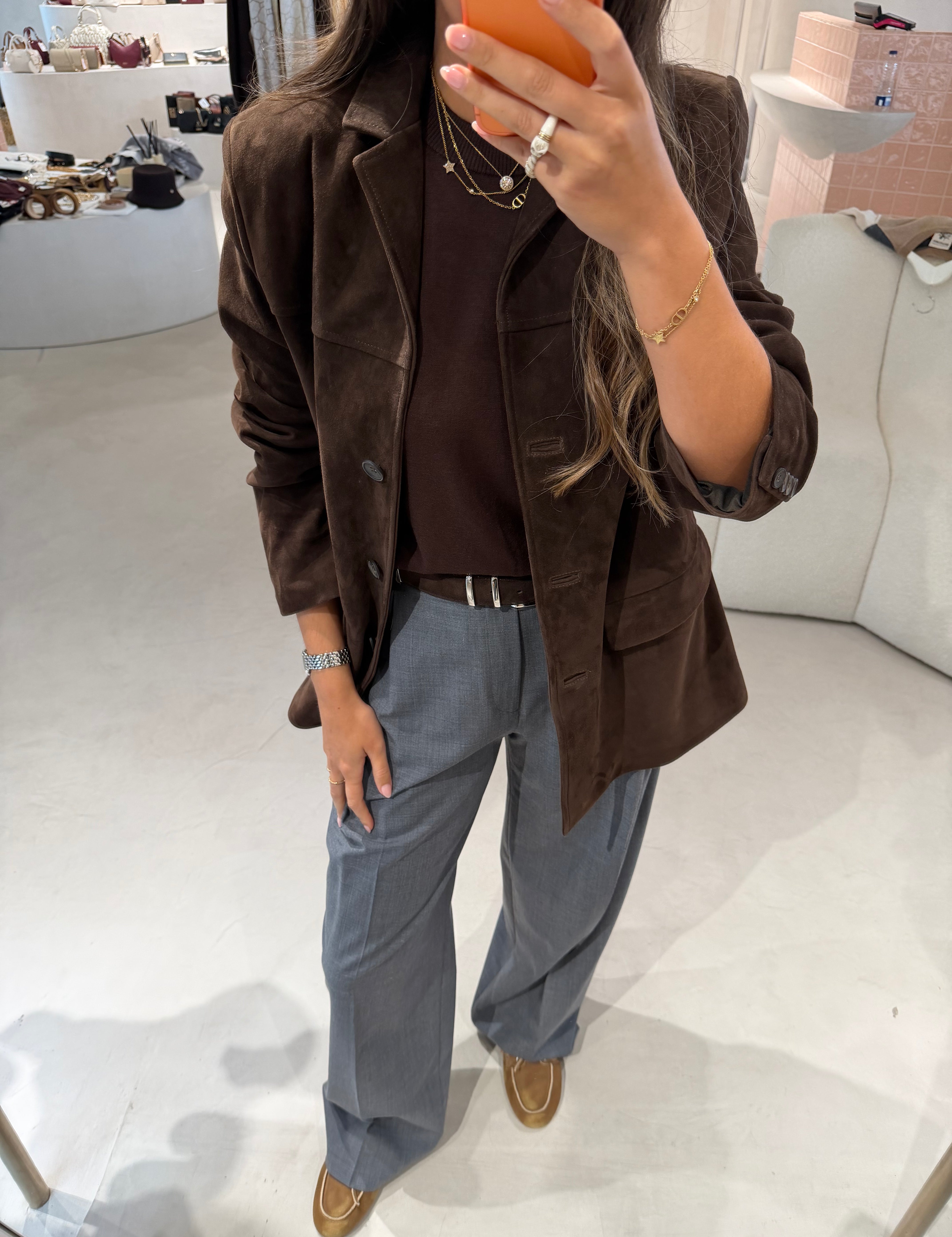 Blazer Oversize em Lã Cinza Isabella | SEMICOUTURE
