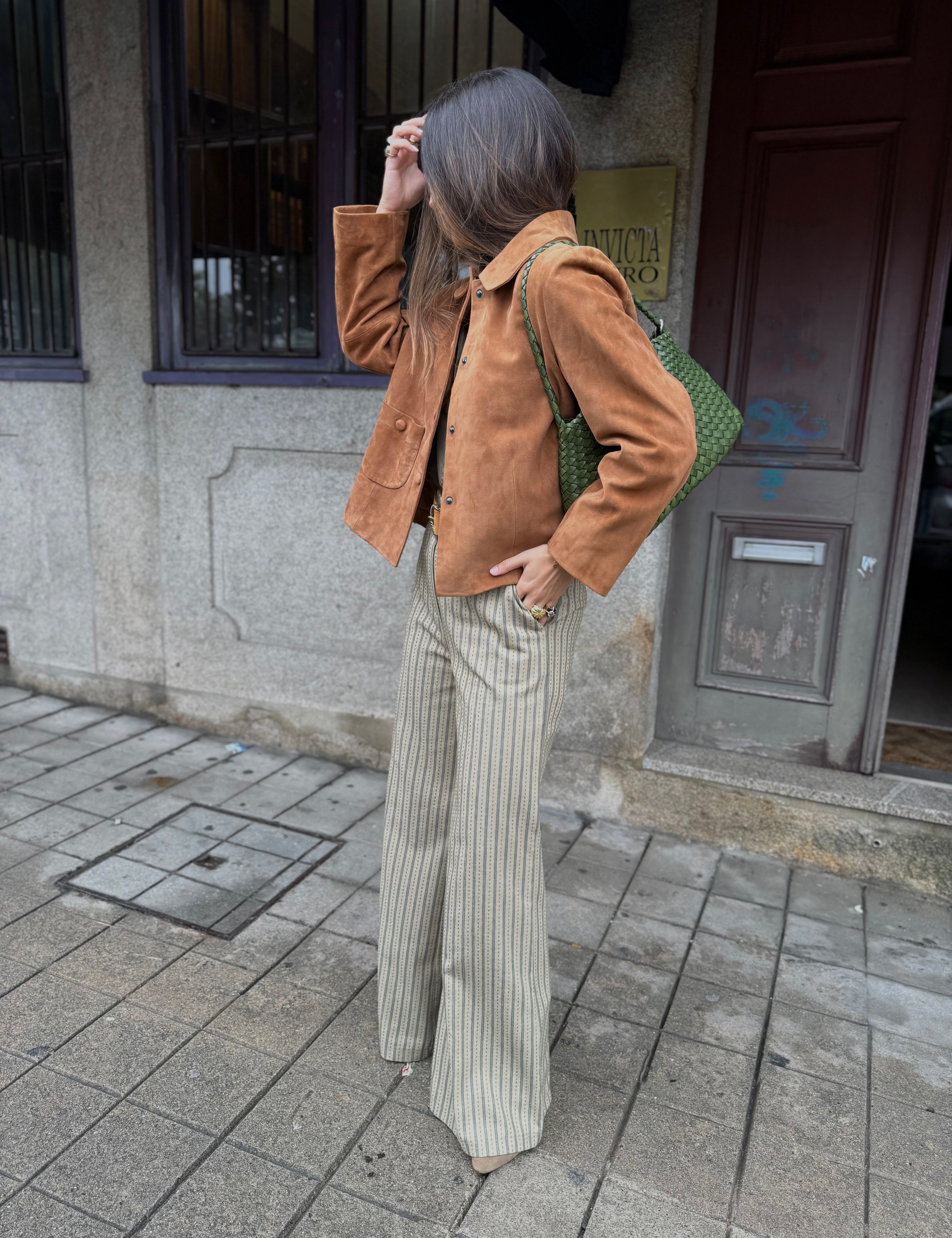 Calça Pantalona em Lã Cinza Juana | SEMICOUTURE