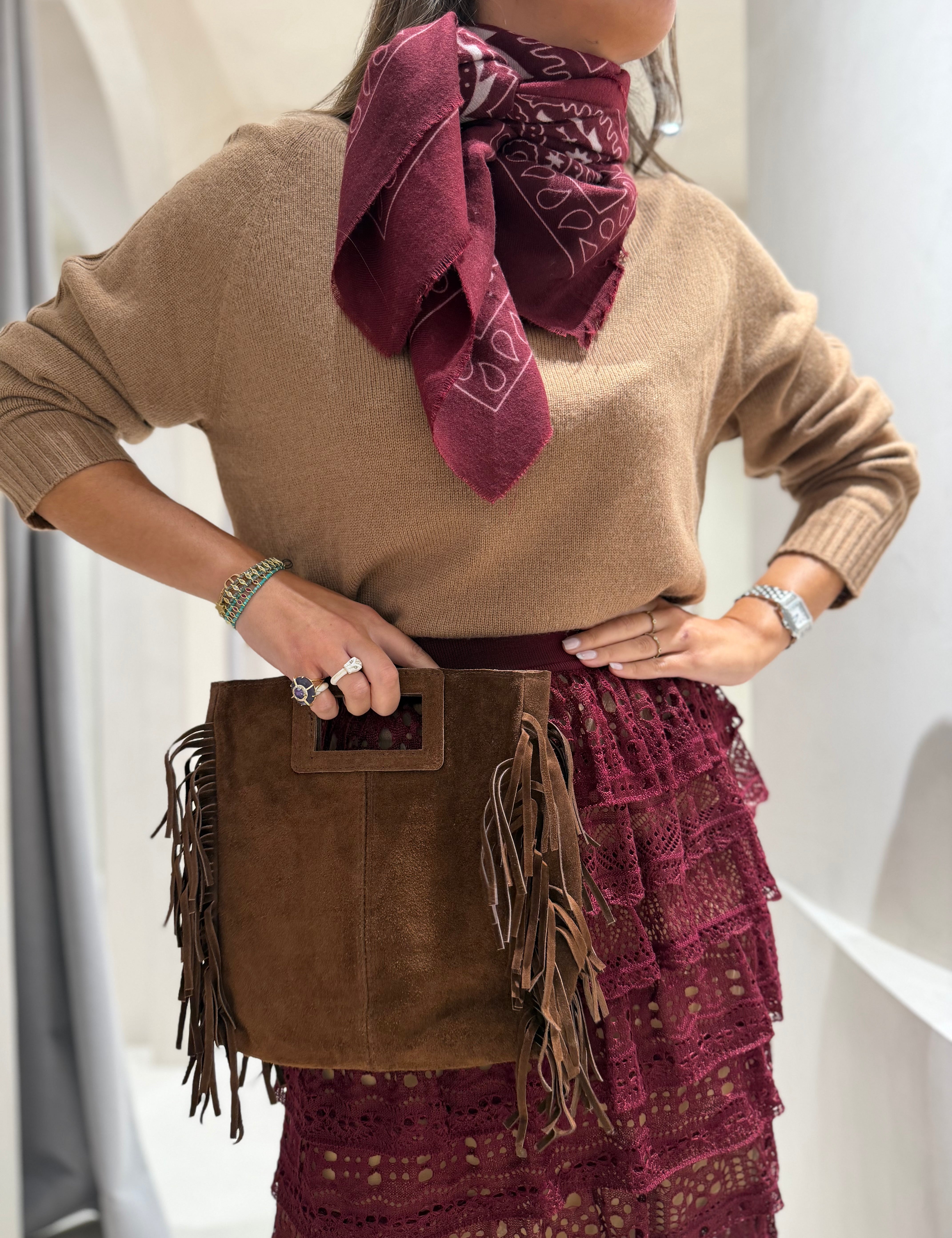 Écharpe Bordeaux com Monograma e Franjas | TWINSET