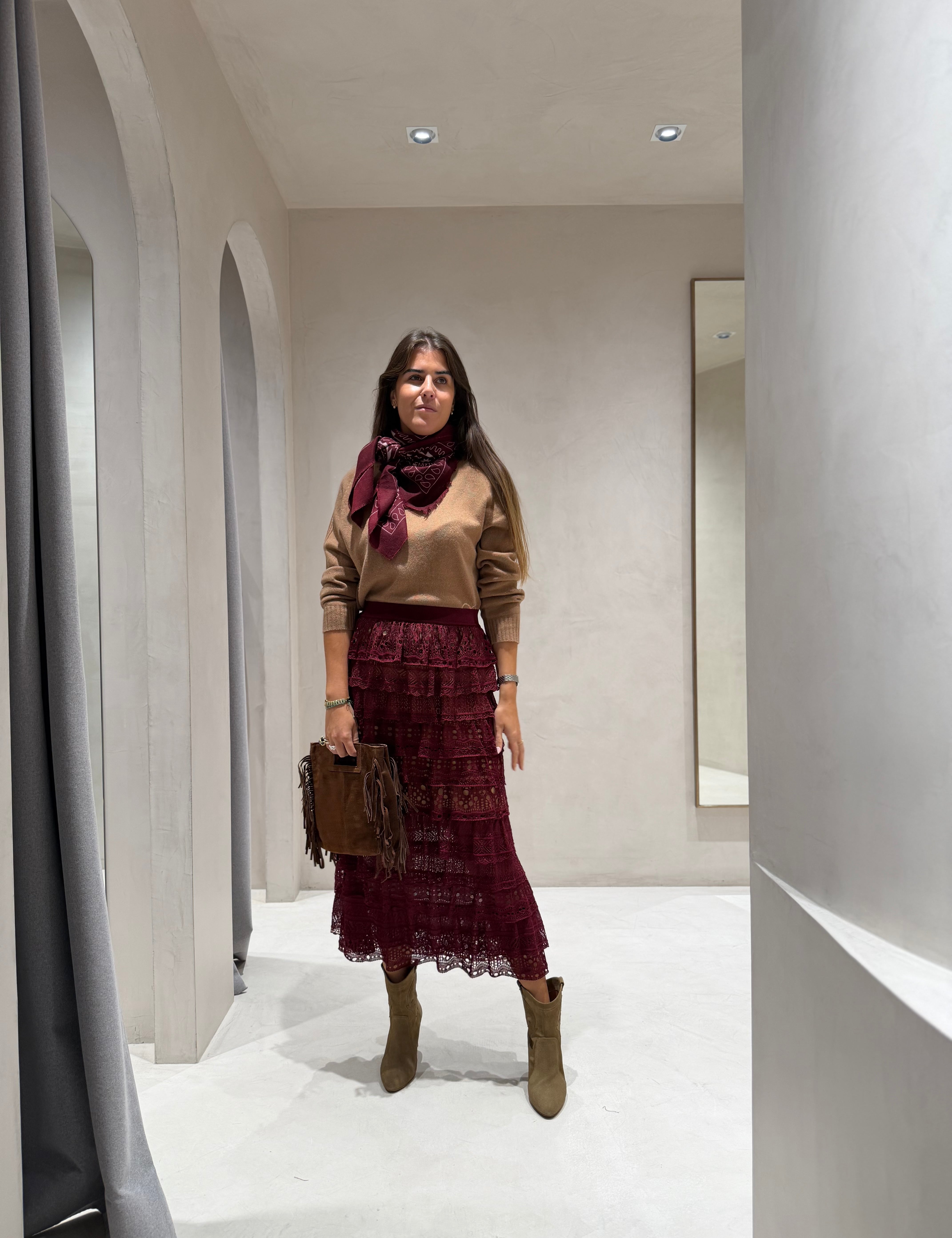 Saia em Tricot Bordeaux com Folhos Mara | CECILIA PRADO